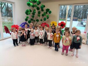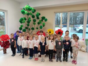 W naszym przedszkolu w dniu 12 listopada obchodziliśmy Święto Niepodległości. Wszystkie przedszkolaki odśpiewały Hymn Polski. W tym dniu podczas zajęć edukacyjnych dzieci utrwaliły wiadomości na temat symboli narodowych, wydarzeń historycznych, tak ważnych dla naszej Ojczyzny. Wykonały również prace plastyczne związane z Polską. Głównym celem było zachęcenie dzieci do wspólnego przeżywania Narodowego Święta Niepodległości oraz kształtowanie szacunku wobec polskich symboli narodowych. Święto Niepodległości jest zawsze znakomitą okazją do kształtowania u dzieci postaw patriotycznych, tożsamości narodowej, zachęcenia do współuczestnictwa w pielęgnowaniu tradycji i oddania hołdu tym, którzy poświęcili dla Ojczyzny swoje życie.
