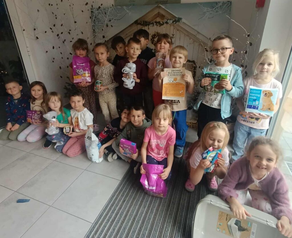 6 grudnia zakończyła się zbiórka karmy oraz innych artykułów dla podopiecznych chełmskiego schroniska. Celem tej inicjatywy była poprawa standardu pobytu zwierząt w schronisku oraz kształtowanie postawy przyjaciela zwierząt. Cieszymy się i jednocześnie dziękujemy wszystkim dzieciom ze żłobka, przedszkolakom oraz ich rodzicom, że włączyli się w akcję, wykazując ogromną wrażliwość na los bezdomnych zwierząt. Pragniemy serdecznie podziękować za chęć niesienia pomocy i otwarte serca! Szczególne podziękowania składamy na ręce Pani Weroniki- mamie jednego z naszych przedszkolaków, która była pomysłowawczynią tego pięknego przedsięwzięcia.