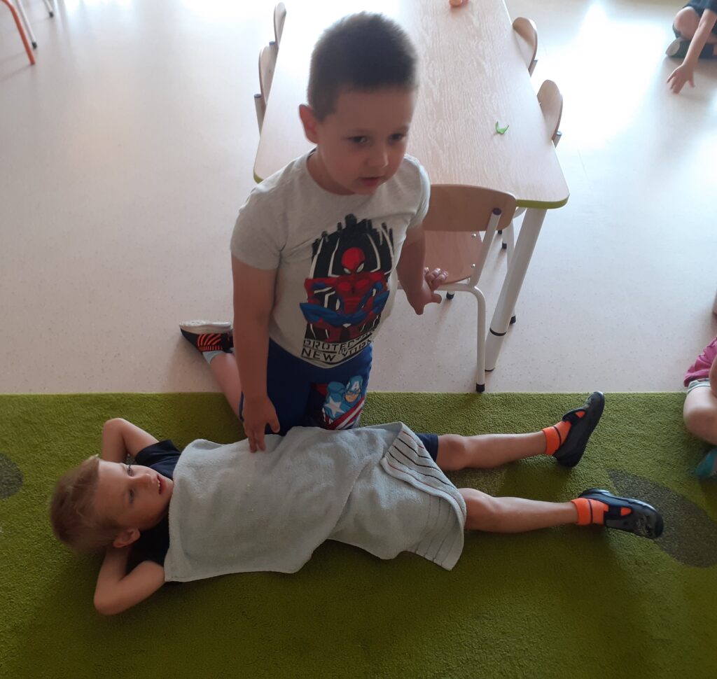 Plik i Folder- bohaterowie piosenki,,Z internetem świat jest bliski” w zabawny sposób uświadomiły dzieciom jak rozważnie korzystać z internetu. Pani Magdalena Łoza- trener w Akademii Piłkarskiej w „ULTIMATE STREET” Siennica Różana edukowała dzieci w sferze bezpiecznych wakacji, zwracając uwagę na liczne korzyści ruchu na świeżym powietrzu. Ponadto dzieci przypomniały numery alarmowe, procedurę udzielania pierwszej pomocy przedmedycznej