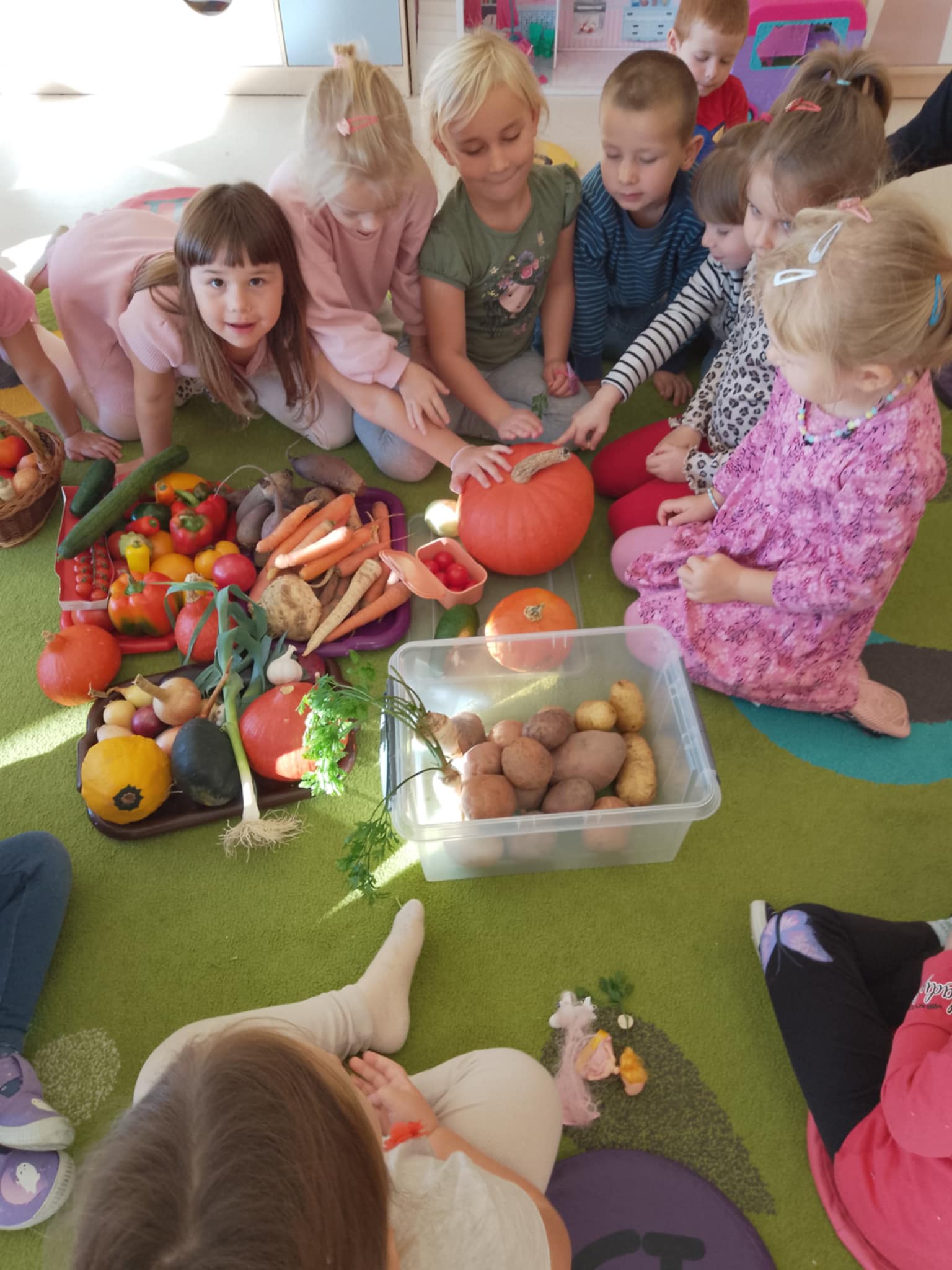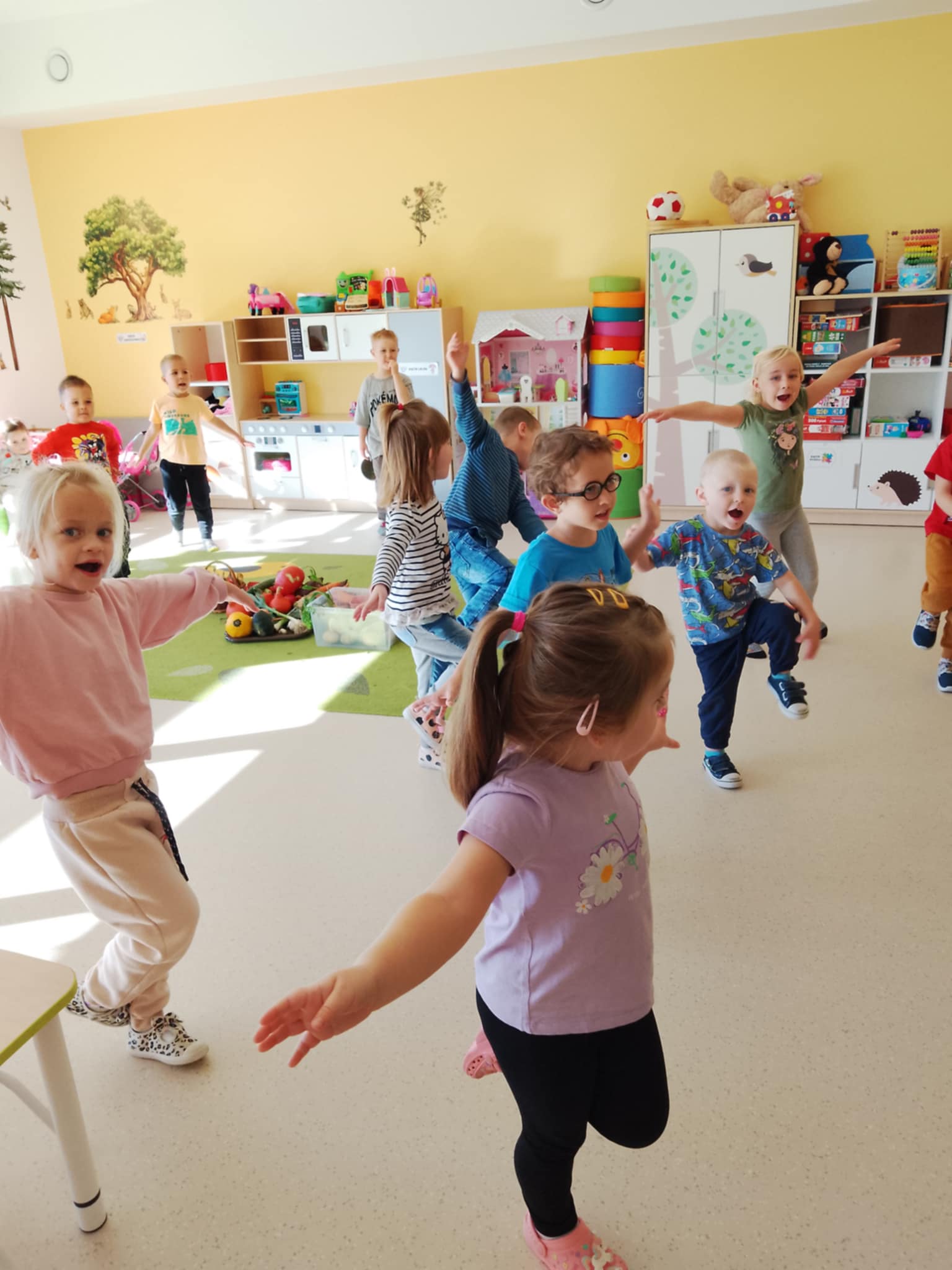 W ramach akcji ” Zdrowo i sportowo „, grupa ” Sówki” świętowała dzień owoców i warzyw. To wydarzenie edukacyjne promujące zdrowy tryb życia, podczas którego zorganizowane zostały zajęcia sportowe i połączone ze spożywaniem owoców i warzyw. Celem jest zachęcenie do jedzenia warzyw i owoców poprzez aktywności sportowe, wspólną zabawę i spożywanie zdrowych przekąsek, co przyczynia się do poprawy zdrowia, odporności i ogólnego samopoczucia dzieci.