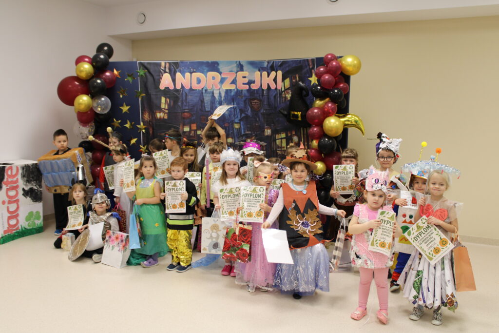 28 listopada w naszym przedszkolu odbyły się radosne i pełne magii Andrzejki. Świętowanie rozpoczęliśmy od rozstrzygnięcia konkursu na „Najciekawszy ekologiczny strój andrzejkowy”. Dzieci zaprezentowały pięknie przygotowane, pomysłowe i ekologiczne przebrania, które zachwyciły zarówno wychowawców, jak i rówieśników. Każdy uczestnik konkursu otrzymał dyplom oraz upominek.