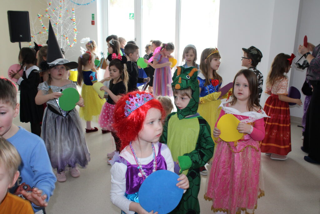 Tego dnia nasze przedszkole zamieniło się w prawdziwą krainę bajek. Dzieci przyszły przebrane za swoje ulubione postacie – nie zabrakło księżniczek, superbohaterów, zwierzątek, wróżek oraz bohaterów znanych bajek. Barwne stroje i szerokie uśmiechy sprawiły, że atmosfera była naprawdę wyjątkowa.