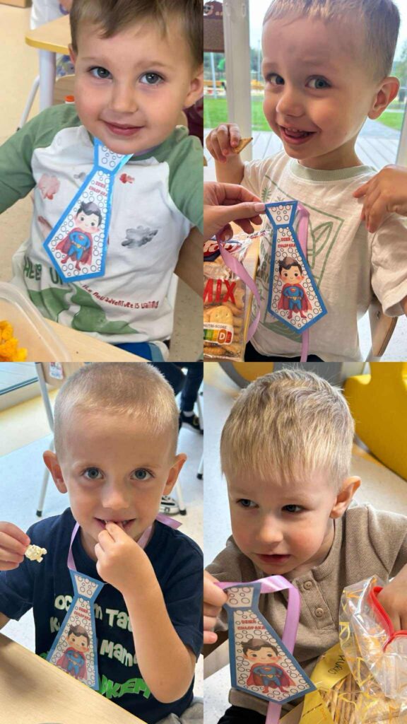Od najmłodszych lat uczymy dzieci, aby pamiętały o ważnych uroczystościach w życiu rodziny czy życiu przedszkola. Bardzo ważne jest więc Święto Chłopców, które obchodzimy 30 września. Właśnie z tej okazji w dniu „Święta Chłopców” panie z grupy I „Biedronki” razem z dziewczynkami przygotowały specjalne krawaty. Natomiast chłopcy z grupy II „Sówki” otrzymali dyplomy dla „Super Chłopaka” i prezenty przygotowane przez dziewczynki.
