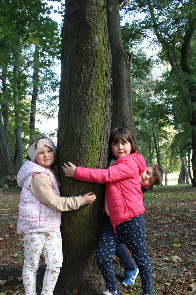 Z okazji Dnia Drzewa dzieci z grupy Motylki wyruszyły na spacer do pobliskiego parku, by z bliska przyjrzeć się przyrodzie i lepiej poznać otaczające nas drzewa. Z wielkim zaangażowaniem przytulały się do drzew, obserwowały ich liście, owoce i korę, a także uczyły się rozpoznawać różne gatunki – poznając ich nazwy i charakterystyczne cechy.