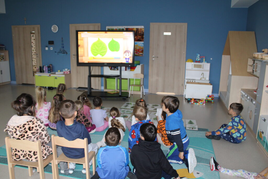 Podczas zajęć dzieci obejrzały także film edukacyjny, z którego dowiedziały się, jak ważną rolę w życiu człowieka odgrywają drzewa – oczyszczają powietrze, dają cień, schronienie dla zwierząt i wiele, wiele więcej.
