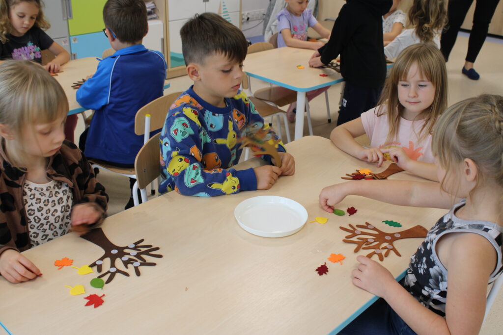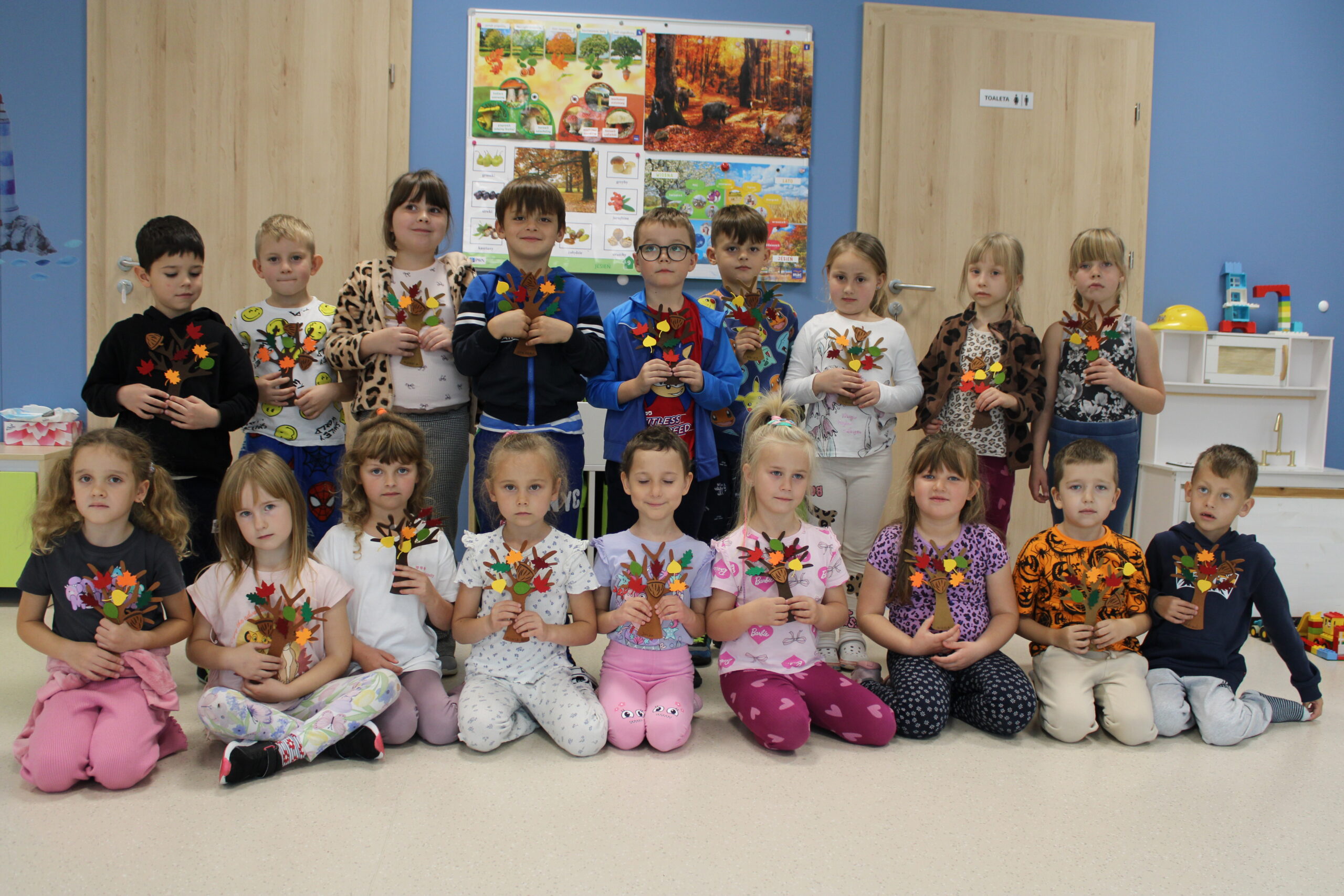 Na zakończenie tego wyjątkowego dnia każde dziecko wykonało swoje własne drzewko z filcu, które ozdobiło naszą przedszkolną gazetkę. To była wspaniała lekcja przyrody i ekologii!