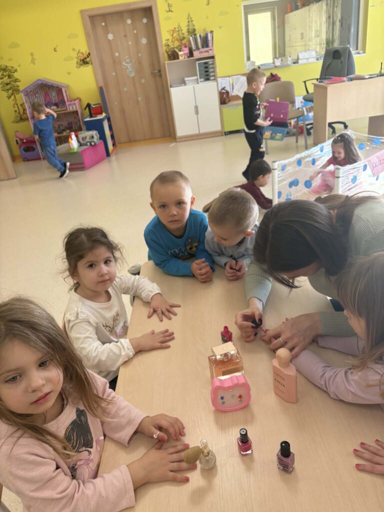 Dziś nasza sala zamieniła się w prawdziwy salon piękności. Było malowanie paznokci, czesanie fryzur i chwila relaksu z ogórkami na oczach jak w prawdziwym spa. Śmiechu było co niemiara, a małe klientki wychodziły z salonu bardzo zadowolone. Pięknie, wesoło i bardzo dziewczyńsko! 😊