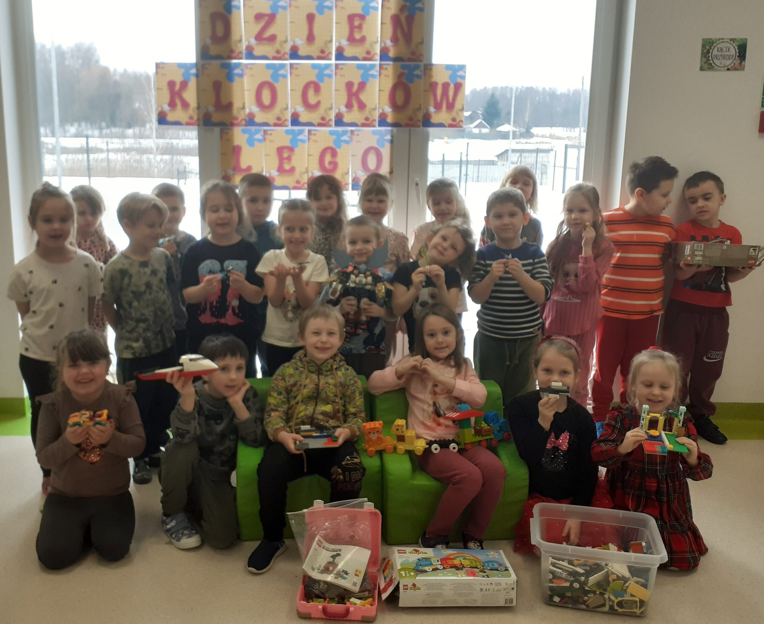 Międzynarodowy Dzień Klocków Lego obchodzimy 28 stycznia, a ich historia sięga 1932 roku. Wymyślił je stolarz Ole Kirk Christiansen. Pierwszy zestaw pojawił się w 1949 roku i od tego czasu klocki zdobyły fanów w różnym wieku na całym świecie. Klocki, wydawane w różnych seriach, układają je zarówno małe dzieci jak i dorośli. Wielbicieli nie brakuje również w grupie ,,Lisków”. Podczas zajęć dzieci poznały historię klocków Lego. Grupowe budowle były okazją do świetnej zabawy i zacieśnienia więzi koleżeńskich. Lego to również wiele innych korzyści dla dzieci, takich jak: koncentracja uwagi, sprawność manualna i koordynacja ruchowa, wyobraźnia i kreatywność, cierpliwość i wytrwałość, liczenie i logiczne myślenie.