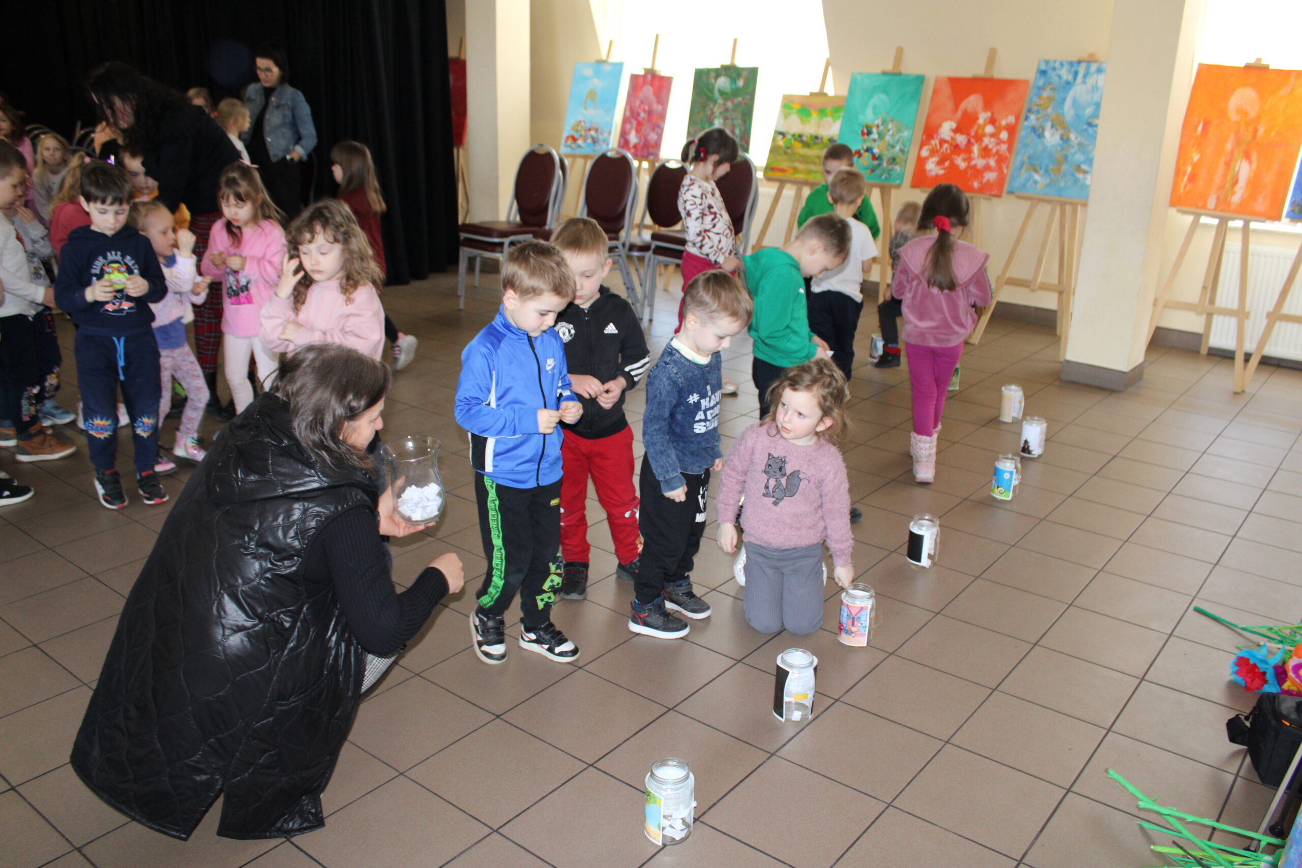 Następnie udały się do Centrum Kultury w Siennicy Różanej na zaproszenie Pani Dyrektor Agnieszki Poźniak na 13. Ogólnopolski Festiwal Animacji O!PLA. Przedszkolaki obejrzały osiem krótkich filmów animowanych, a następnie głosowały na film, który im się najbardziej podobał. Dzieci doskonale się bawiły w czasie oglądania bajek co było widać po ich reakcji.