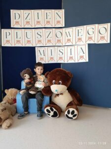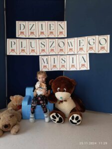 Z tej okazji w dniu 25.11.2024 r. przedszkolaki z naszego przedszkola uczestniczyły w obchodach „Światowego Dnia Pluszowego Misia”. Każde dziecko przyszło do przedszkola ze swoim „milutkim przyjacielem”. Można było zobaczyć misie małe, średnie, duże, brązowe, różowe, białe itd. Wszystkie były śliczne i wyjątkowe. W tym wesołym dniu przedszkolaki czekało wiele atrakcji. Zostały zaproszone do wspólnej zabawy ze swoimi misiami, poznały również historię ich święta i bawiły się do znanych misiowych przebojów.