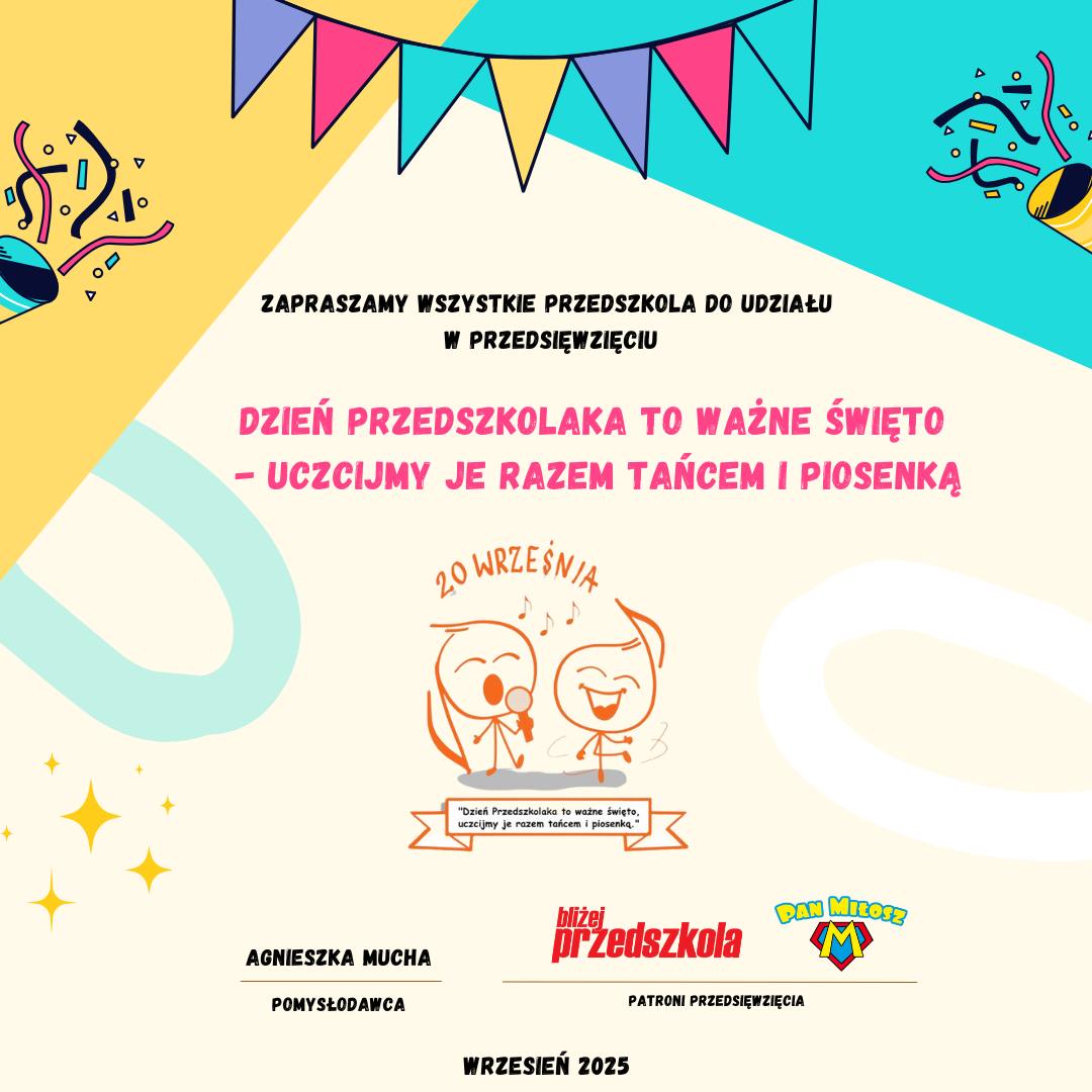 22 września 2025 wszystkie dzieci uczęszczające do przedszkola obchodziły swoje święto, Ogólnopolski Dzień Przedszkolaka. Z tej okazji w naszym przedszkolu zorganizowane zostały zabawy ruchowe, zabawy taneczne oraz pokaz baniek mydlanych. Dzieci zaśpiewały piosenkę „Dziecięce marzenia” w ramach udziału w ogólnopolskiej akcji „Dzień Przedszkolaka to ważne święto, uczcijmy je razem tańcem i piosenką” organizowanego przez Przedszkole nr2 im. Misia Uszatka w Gryfinie, pod patronatem Centrum Rozwoju Edukacji Województwa Łódzkiego i miesięcznika Bliżej Przedszkola. Dzieci otrzymały medale oraz słodkie niespodzianki. Dzień Przedszkolaka podkreśla wagę edukacji przedszkolnej, ale także dostarczył dzieciom wspaniałej zabawy i radości z bycia przedszkolakiem. Życzymy wszystkim kochanym przedszkolakom uśmiechu na każdy dzień oraz twórczego pobytu w przedszkolu.