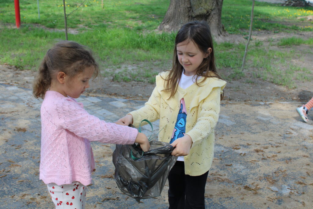 Podczas obchodów Dnia Ziemi przedszkolaki zastanawiały się co dobrego możemy zrobić dla naszej planety? W tym dniu dzieci poznawały zasady, których należy przestrzegać, aby chronić środowisko naturalne, uczyły się poprawnego segregowania śmieci, wykonywały prace plastyczne oraz poznały trudne słowo recykling. Finałem było wyjście w celu posprzątania najbliższej okolicy. Wszystkie te działania miały na celu podkreślenie, jak ważne jest nasze zaangażowanie w działania na rzecz ochrony naszej planety oraz rozbudzenie w dzieciach potrzeby dbania o naturę.