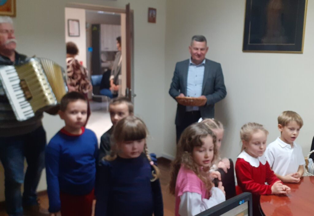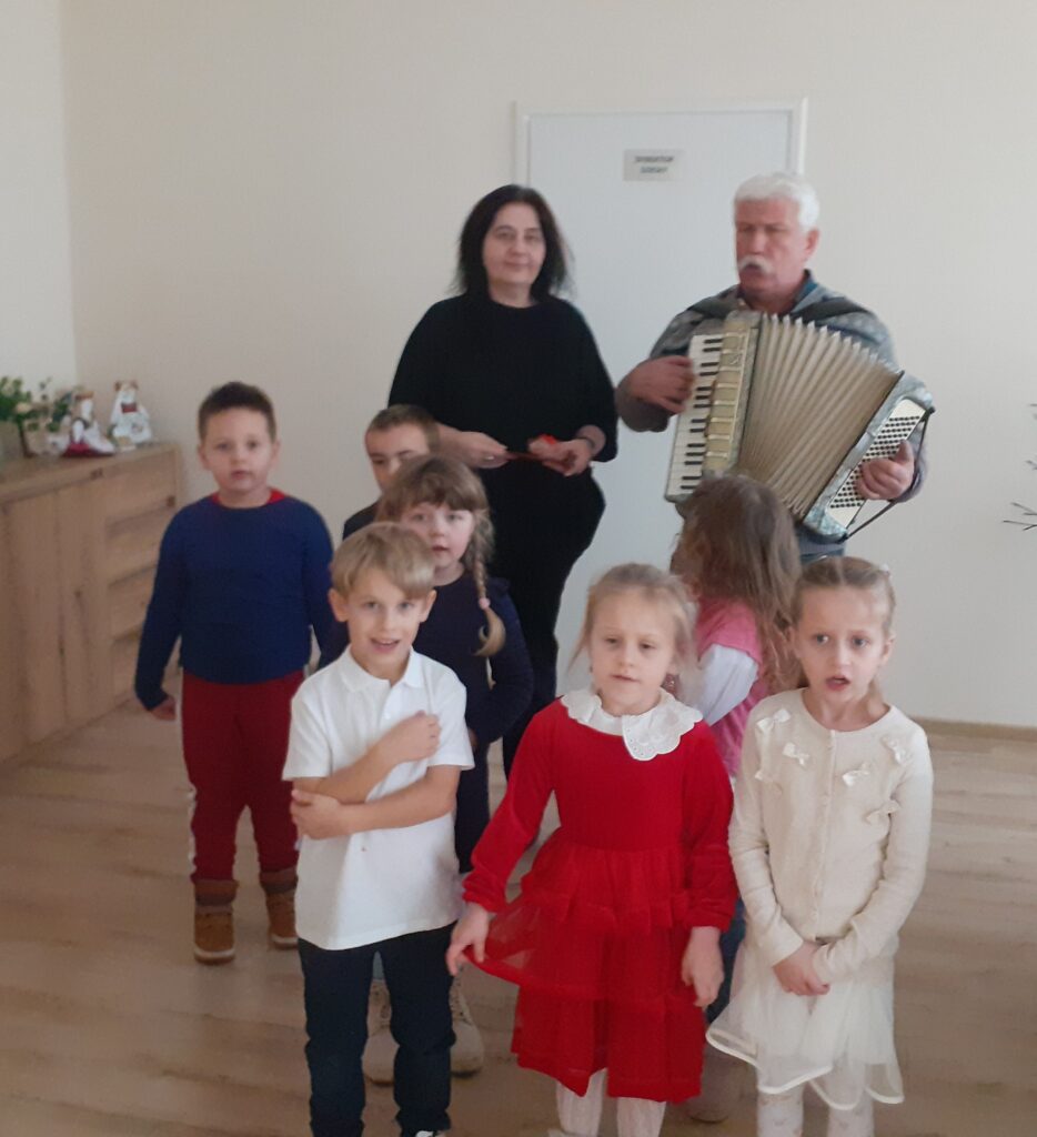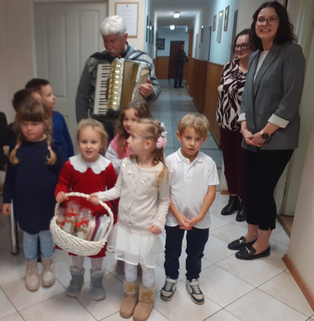 W okresie przedświątecznym przedszkolaki z grupy,,Liski” wybrały się, aby podzielić się magią Świąt Bożego Narodzenia. Kolędnicy odwiedzili okoliczne instytucje: Urząd Gminy, Szkołę Podstawową, Zespół Szkół Centrum Kształcenia Rolniczego, Centrum Kultury, Filię Banku Spółdzielczego, Aptekę, Urząd Pocztowy. Wyśpiewały piękne kolędy i pastorałki, niosąc świąteczną radość, ciepło i życzenia. Bardzo dziękujemy za serdeczne przyjęcie i słodkie upominki.