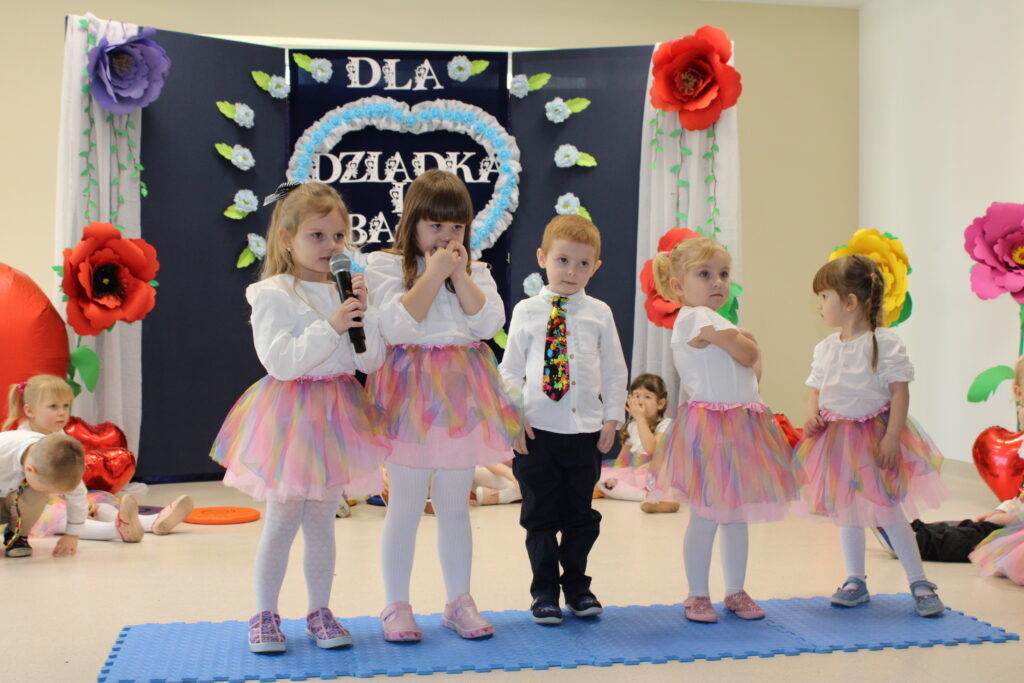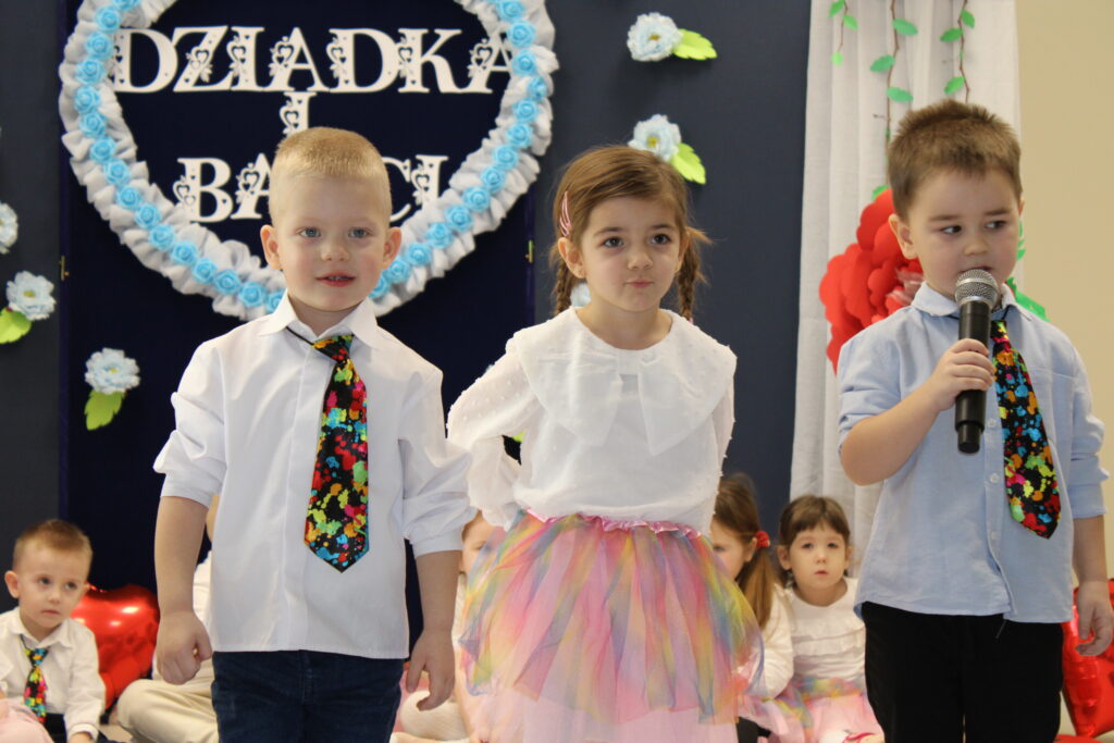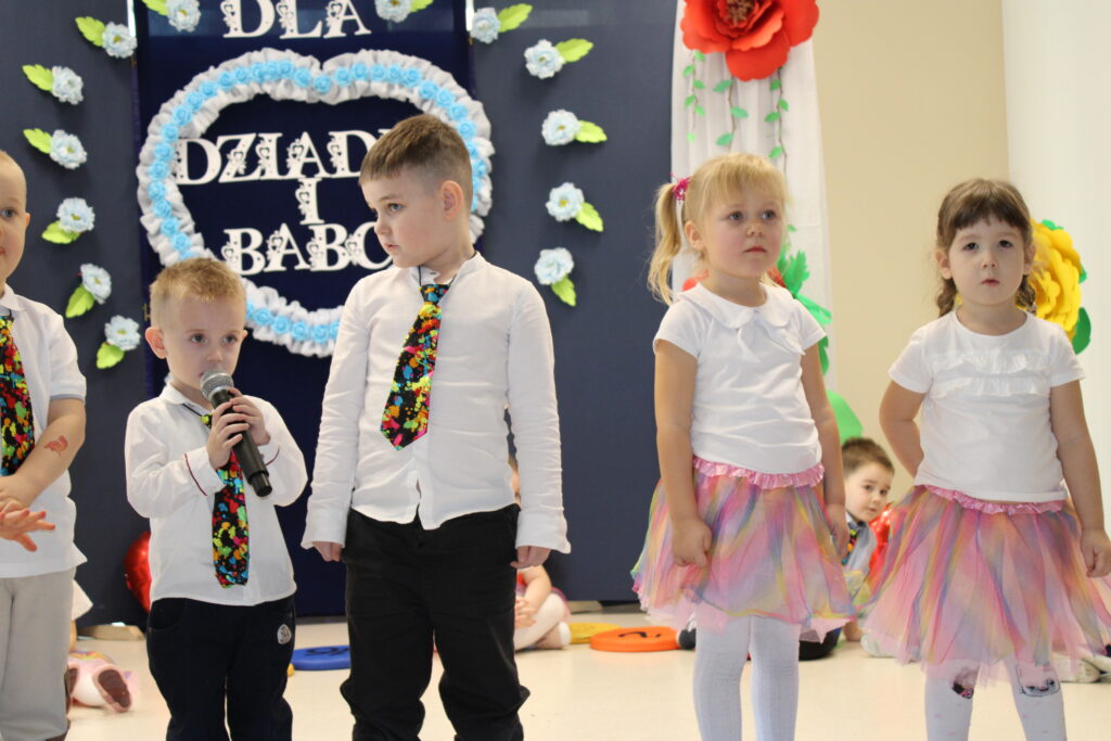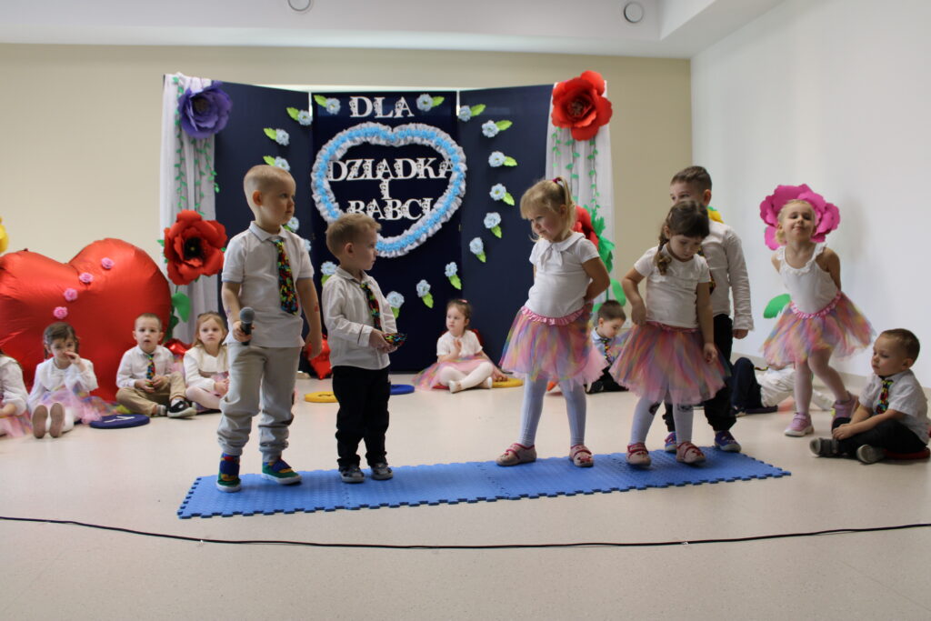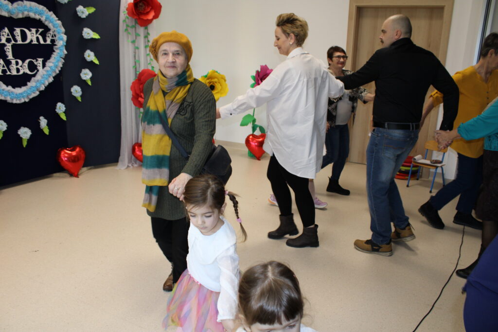 Nasza grupa ze swoimi dziadkami spotkała się 23 stycznia 2025r. Mali artyści z przejęciem odtwarzali swoje role i śpiewali piosenki, a czcigodni goście ze wzruszeniem odbierali czułe słowa kierowane pod ich adresem. Po części artystycznej dzieciaczki wręczyły dziadkom prezenty. Nie odbyło się również bez słodkiego poczęstunku przy herbatce.