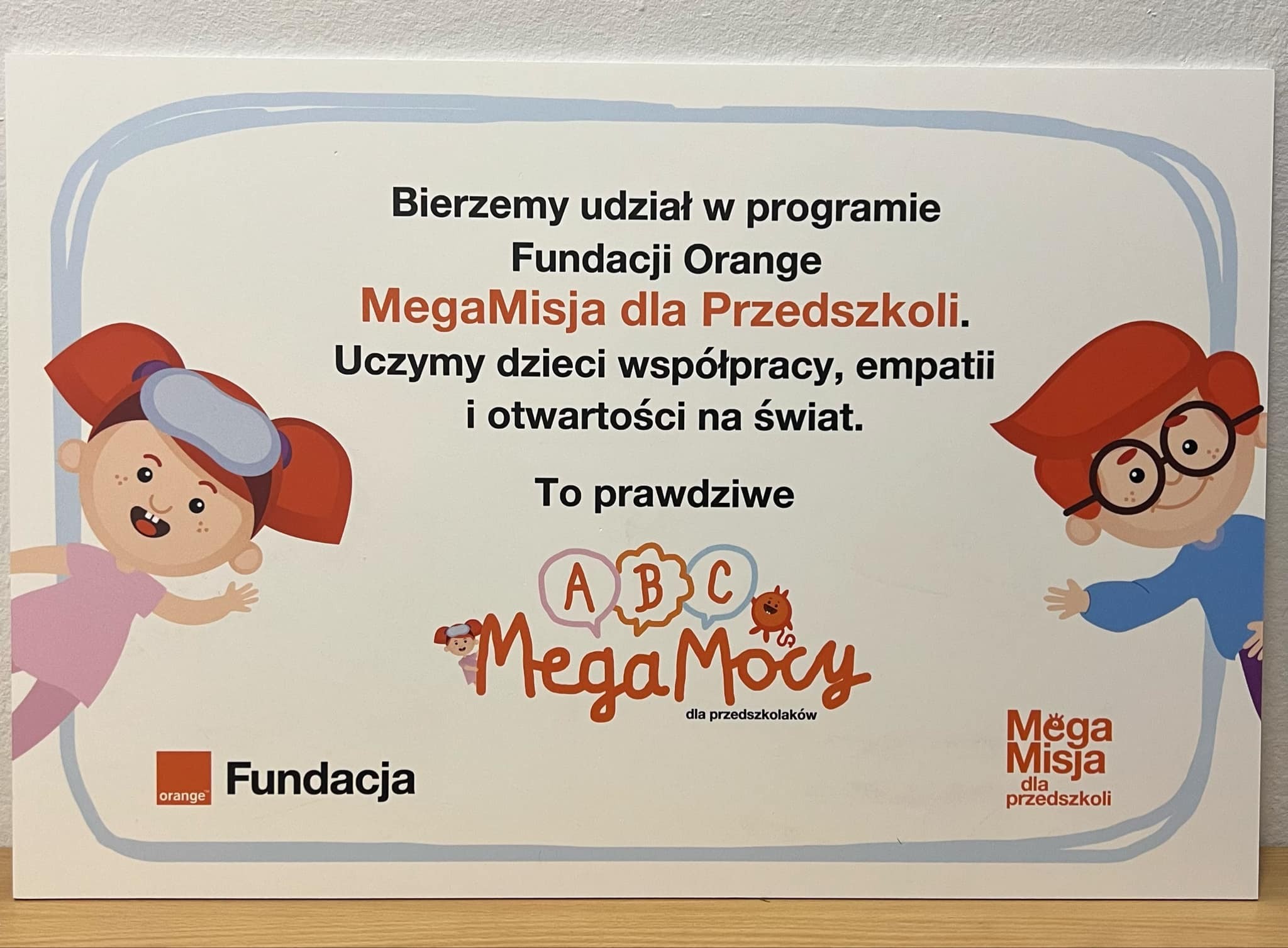 W tym roku szkolnym dzieci z grupy,,Liski” biorą udział w programie edukacyjnym dla dzieci w wieku 5 – 6 lat- ,,MegaMisja dla przedszkoli”. Program ten pomoże rozwinąć kompetencje emocjonalno- społeczne przedszkolaków oraz rozwijać umiejętności współpracy, kulturę dyskusji, ćwiczy empatię, uważność na emocje swoje i innych, a także krytyczne myślenie.