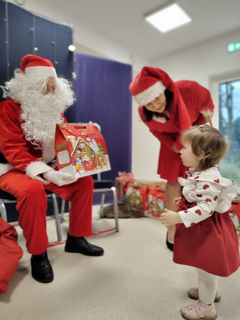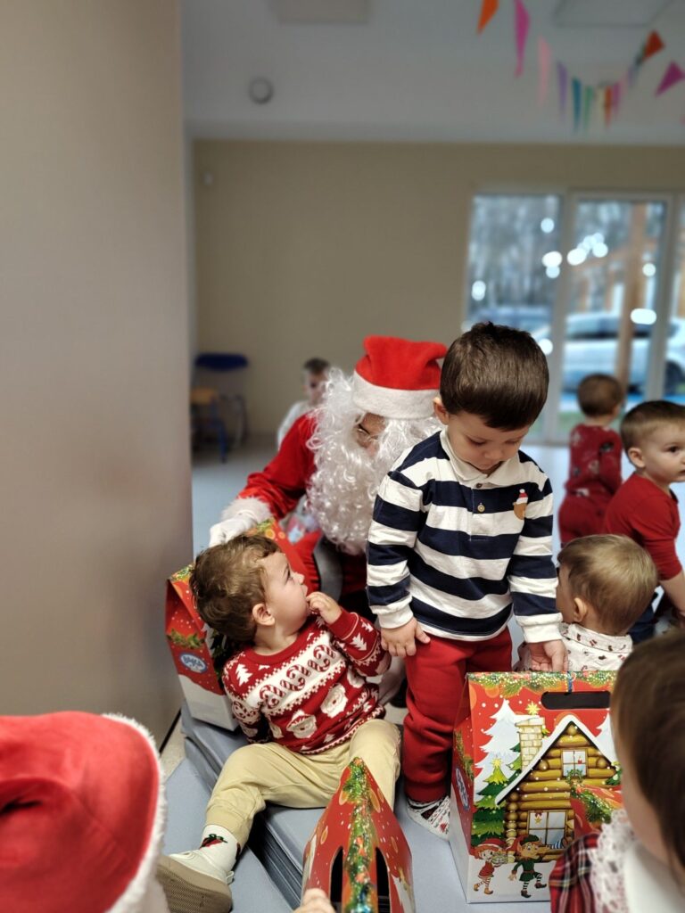 Świąteczny czas zagościł u nas na dobre! Dzisiejsza wizyta Mikołaja była dla naszych maluszków ogromnym przeżyciem – niektóre z zaciekawieniem obserwowały brodatego gościa, inne odważnie pozowały do zdjęć. Wspólne chwile były pełne uśmiechu i prawdziwej dziecięcej radości. Dziękujemy Mikołajowi za odwiedziny i magiczne wspomnienia!