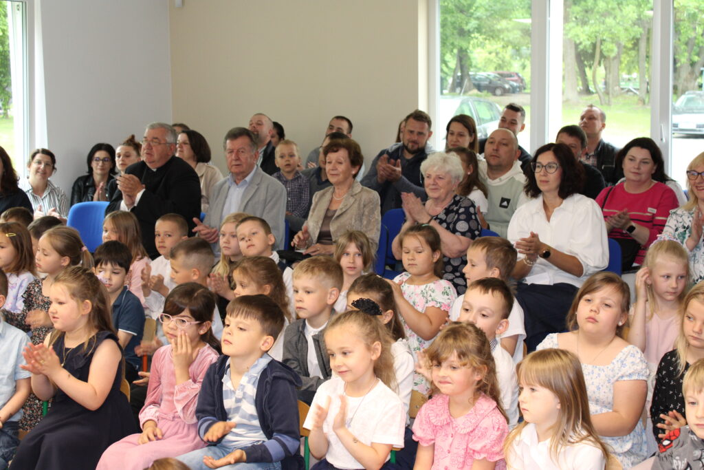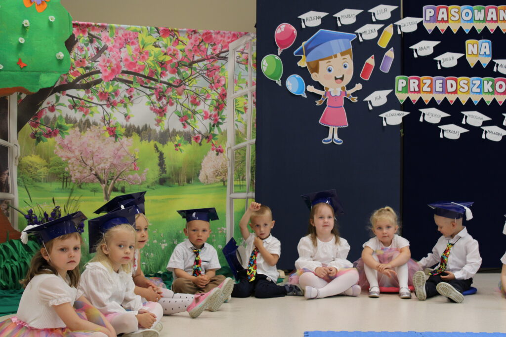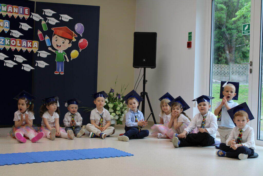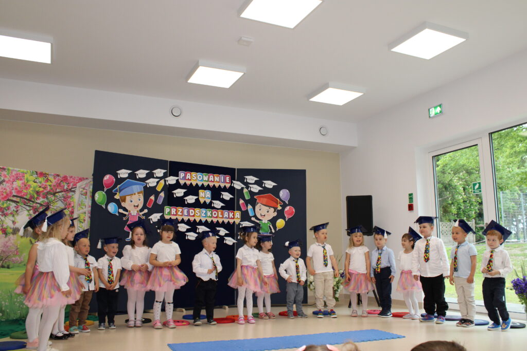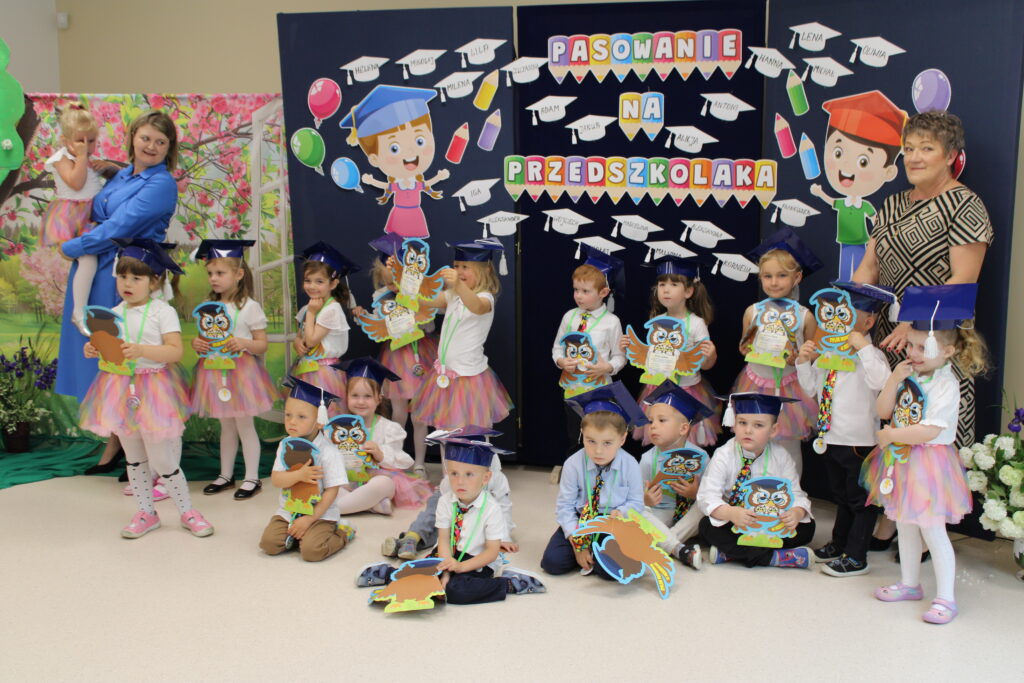 Dnia 23 maja 2025 roku odbyła się uroczystość Pasowania na Przedszkolaka dzieci z grupy „Tęczowe Nutki”. Pasowanie to bardzo ważny dzień nie tylko dla dzieci, ale również dla ich Rodziców, którzy tłumnie stawili się na czas w sali widowiskowej naszego przedszkola. Na początku nastąpiło powitanie gości. Następnie Nutki zaprezentowały część artystyczną, po której nastąpił akt pasowania wielkim ołówkiem specjalnie przygotowanym przez Panią dyrektor na tę uroczystość. Dzieci złożyły również przyrzeczenie, że będą zgodnie się bawić w przedszkolu, przychodzić każdego dnia z uśmiechem, słuchać pani, pomagać kolegom i być dzielnym Przedszkolakiem. Dzieci otrzymały piękne dyplomy, medale i prezenty od rodziców. Starsi koledzy również pamiętali i dla naszych najmłodszych przygotowali niespodzianki. Następnie udaliśmy się do naszej sali na słodki poczęstunek przygotowany przez rodziców. Życzymy maluszkom uśmiechów i radości z bycia przedszkolakiem. Odkrywania swoich zainteresowań, poznawania nowych przyjaciół, zdobywania nowych umiejętności. Niech każdy dzień będzie dla Was wyjątkowy. Rodzicom wiary, że ich dzieci ,,górą przeniosą”. Powodzenia!
