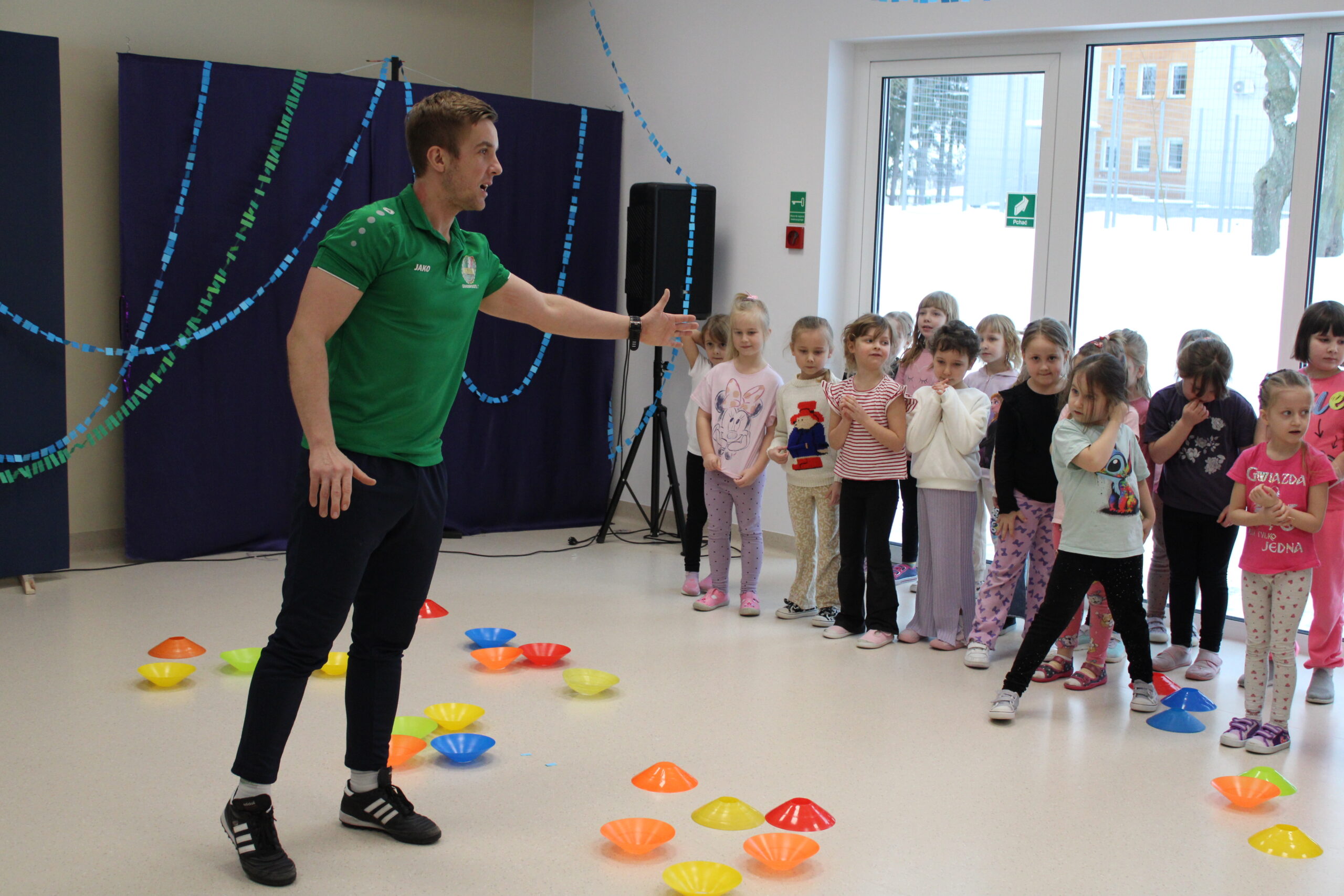 Pod takim hasłem dnia 26 stycznia 2026 roku odbyło się spotkanie dzieci z Gminnego Przedszkola w Siennicy Różanej z trenerami sportowymi Magdaleną Łozą i Damianem Doboszem. Podczas spotkania przedszkolaki miały okazję dowiedzieć się, jakie korzyści płyną z aktywnie spędzanego czasu i uprawiania sportu. Trenerzy wskazali, jakie cechy powinien mieć dobry piłkarz oraz zachęcali do trenowania piłki nożnej i innych dyscyplin sportu. Zwrócili uwagę na systematyczne trenowanie, które przynosi wiele satysfakcji i radości, przede wszystkim, gdy zaczyna się odnosić sukcesy. Dzieci oglądały puchary jakie można zdobyć podczas treningów. Dzieci, a zwłaszcza chłopcy, byli bardzo zainteresowani i chętnie dzielili się swoimi doświadczeniami dotyczącymi sportu i znanych sportowców. Spotkanie zakończył wspólny trening. Trenerzy przygotowali bardzo ciekawe zabawy, w których dzieci z ogromnym zapałem uczestniczyli. Serdecznie dziękujemy za wizytę!