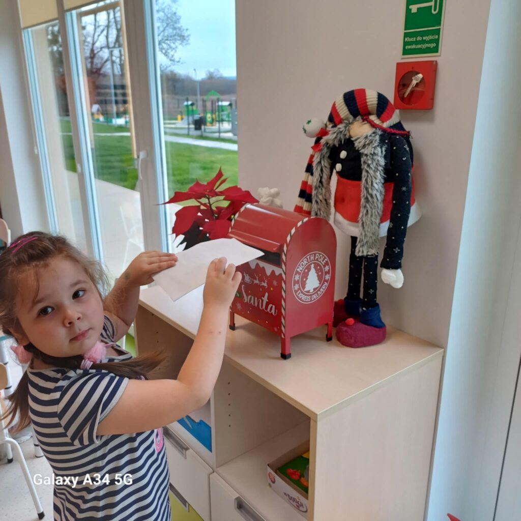 W naszej grupie rozpoczęliśmy wspaniałą tradycję pisania listów do Świętego Mikołaja! Dzieci z radością usiadły przy biurkach, by wyrazić swoje najskrytsze życzenia i marzenia. Każde dziecko starannie pisało, rysowało lub dekorowało swoje listy, w których zawarło prośby o wymarzone prezenty, a także serdeczne pozdrowienia dla Mikołaja.