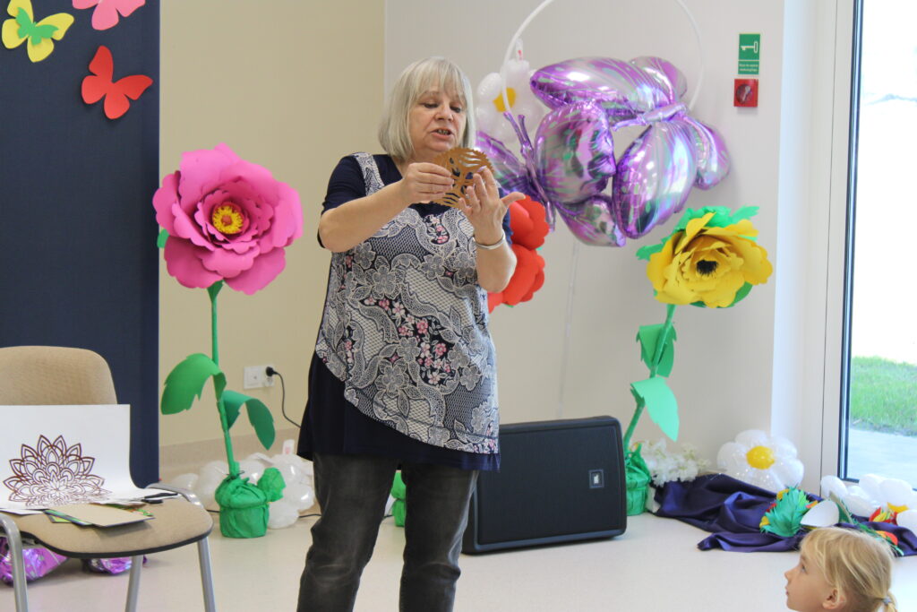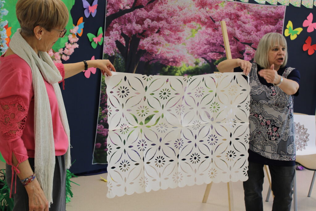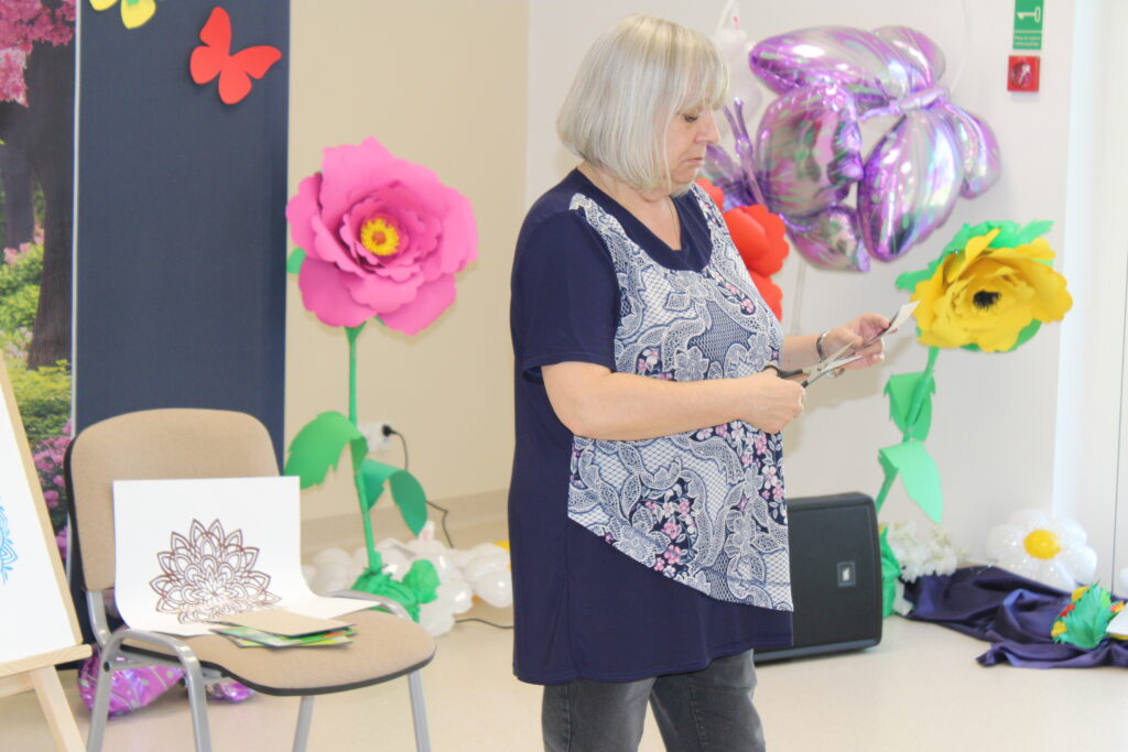 Dnia 4 kwietnia 2025 r. nasze przedszkole odwiedziła pani Danuta Perestaj – twórczyni ludowa zrzeszona w STL – Stowarzyszenie Twórców Ludowych. Jest ona jedyną w powiecie krasnostawskim wycinankarką tradycyjnych wycinanek lubelskich: jednobarwnych w kształcie koła lub wieloboku foremnego. Wycinanką interesuje się od 25 lat. Jej prace znajdują się w zbiorach prywatnych, w Krasnostawskim Domu Kultury oraz w Muzeum Regionalnym w Krasnymstawie. Prace Pani Danusi były nagradzane w wielu konkursach oraz brały udział w różnych wystawach.