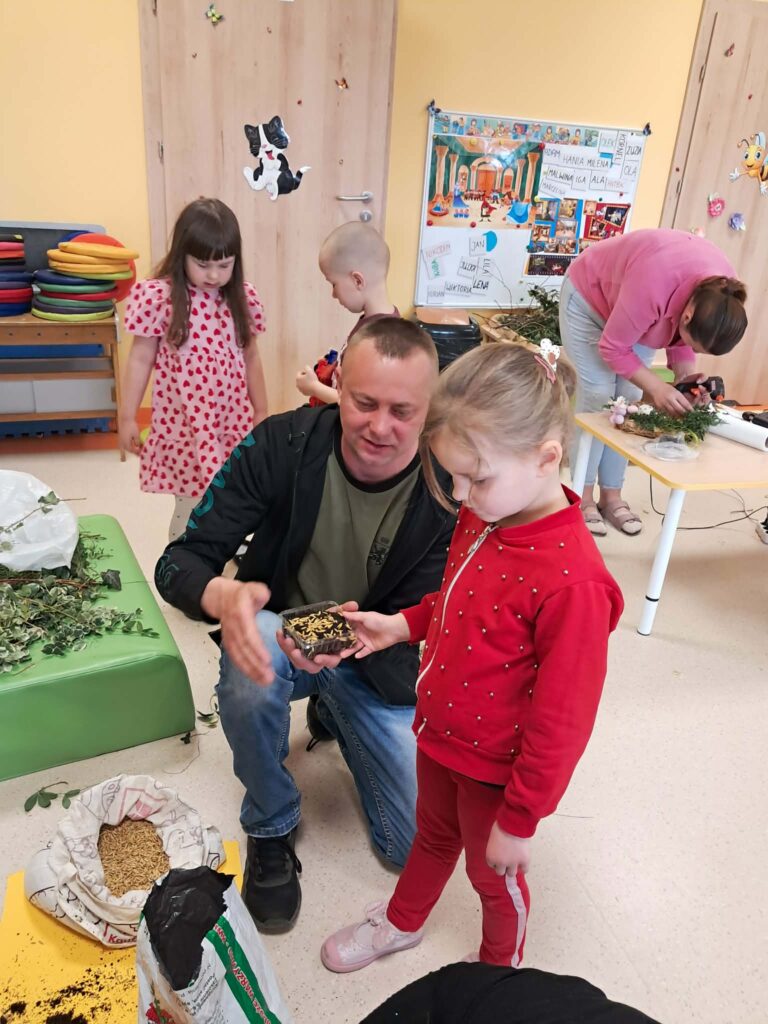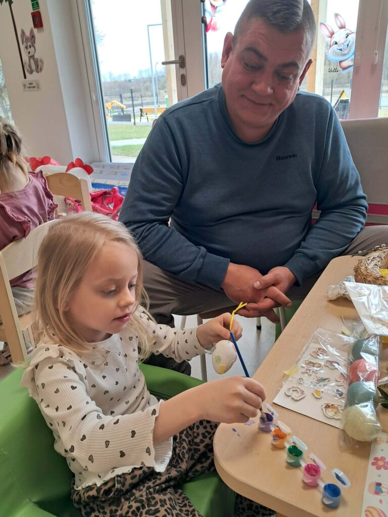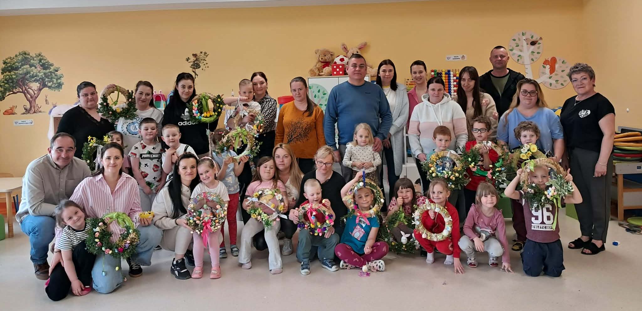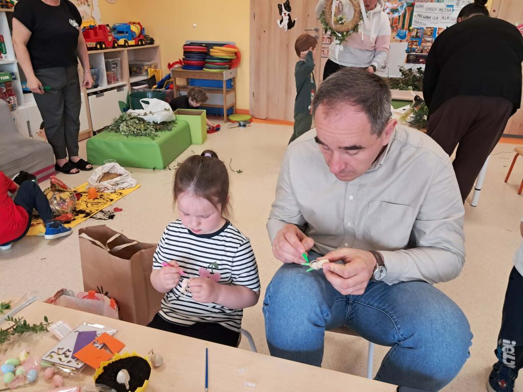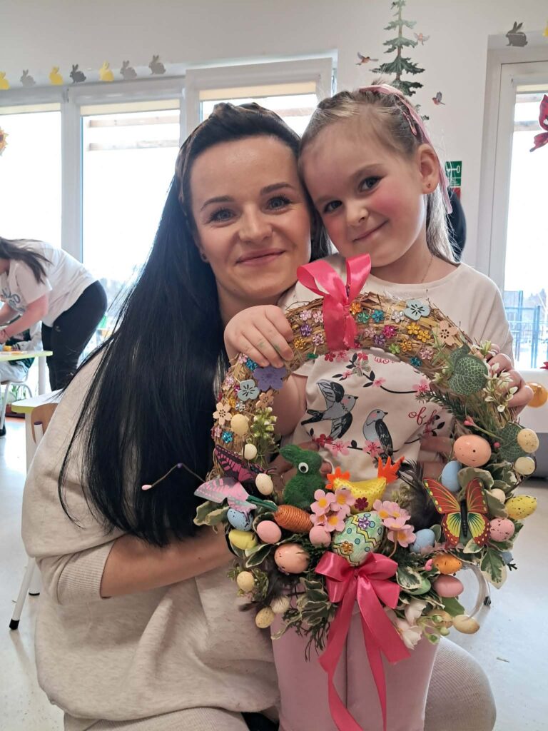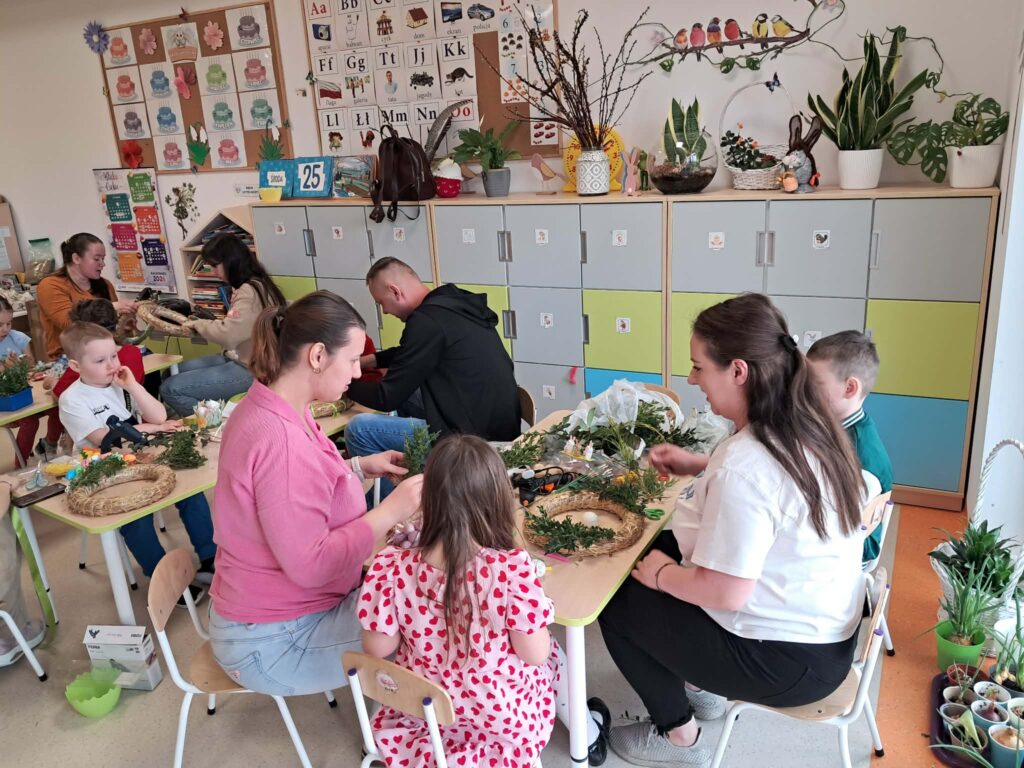 W grupie „Sówki” odbyły się warsztaty świąteczne, w których wzięli udział rodzice wraz ze swoimi dziećmi. Spotkanie przebiegło w miłej i twórczej atmosferze. Uczestnicy z dużym zaangażowaniem wykonali piękne wianki oraz ozdoby wielkanocne. Warsztaty były doskonałą okazją do wspólnego spędzenia czasu, rozwijania kreatywności oraz integracji.