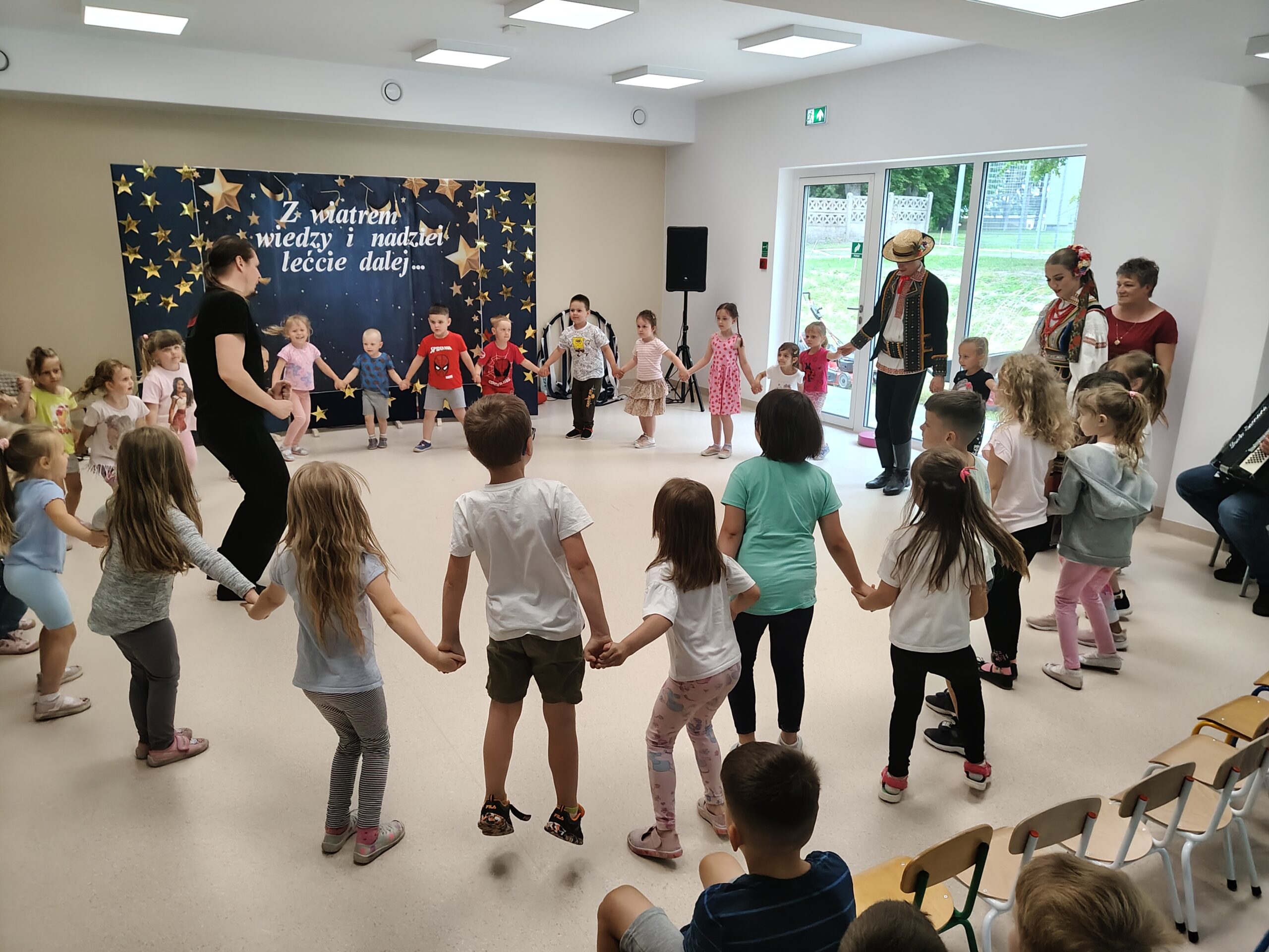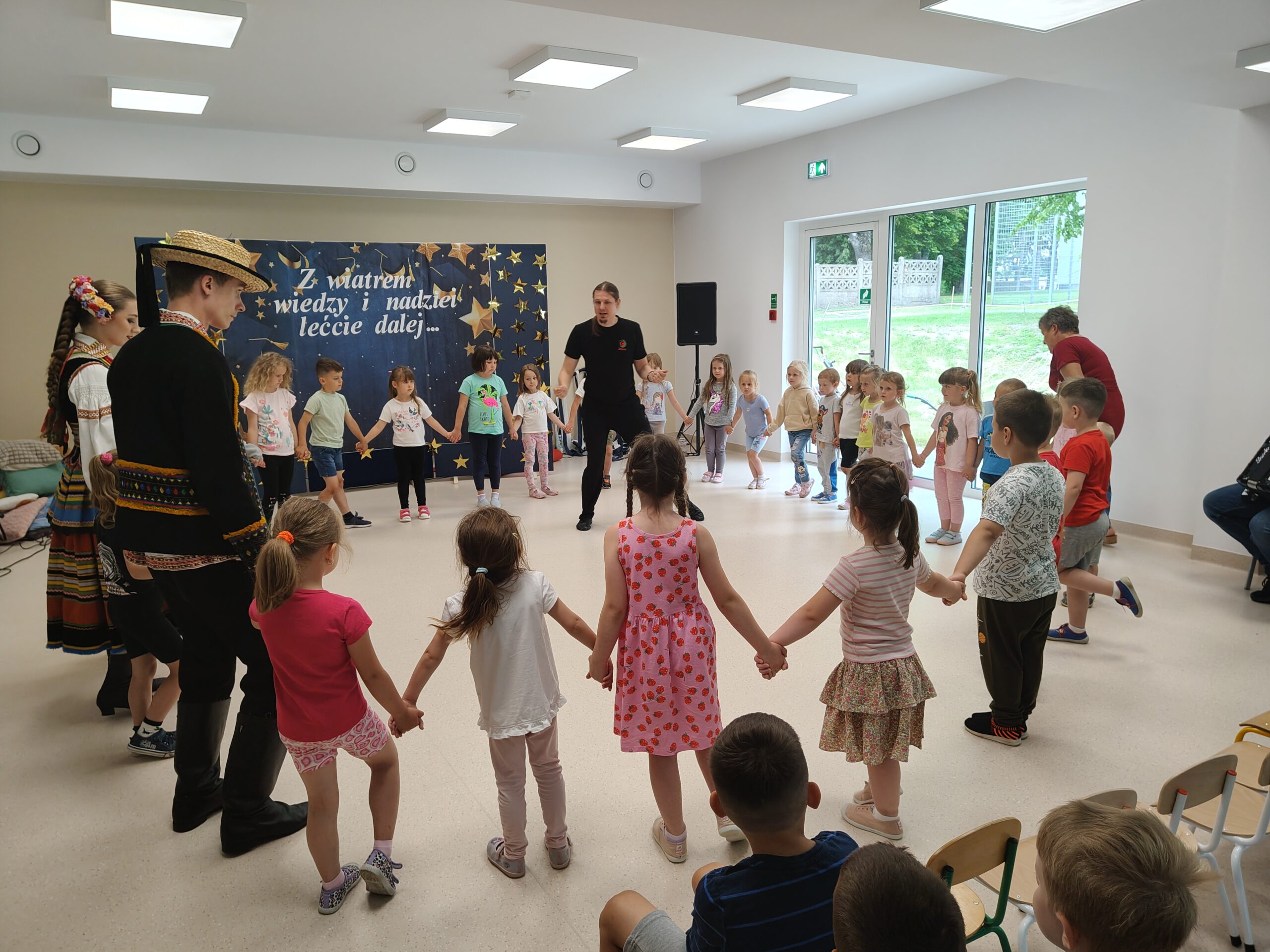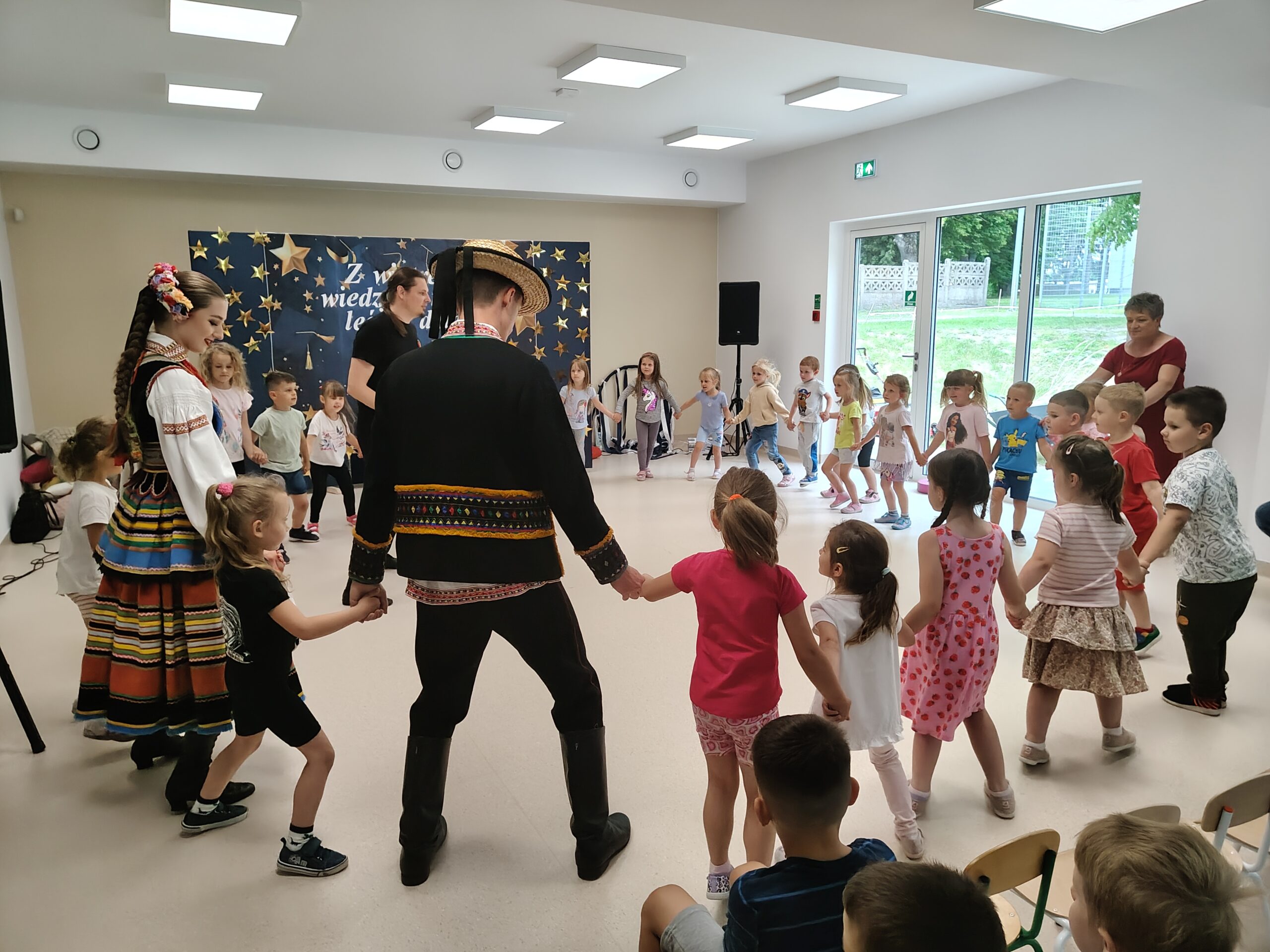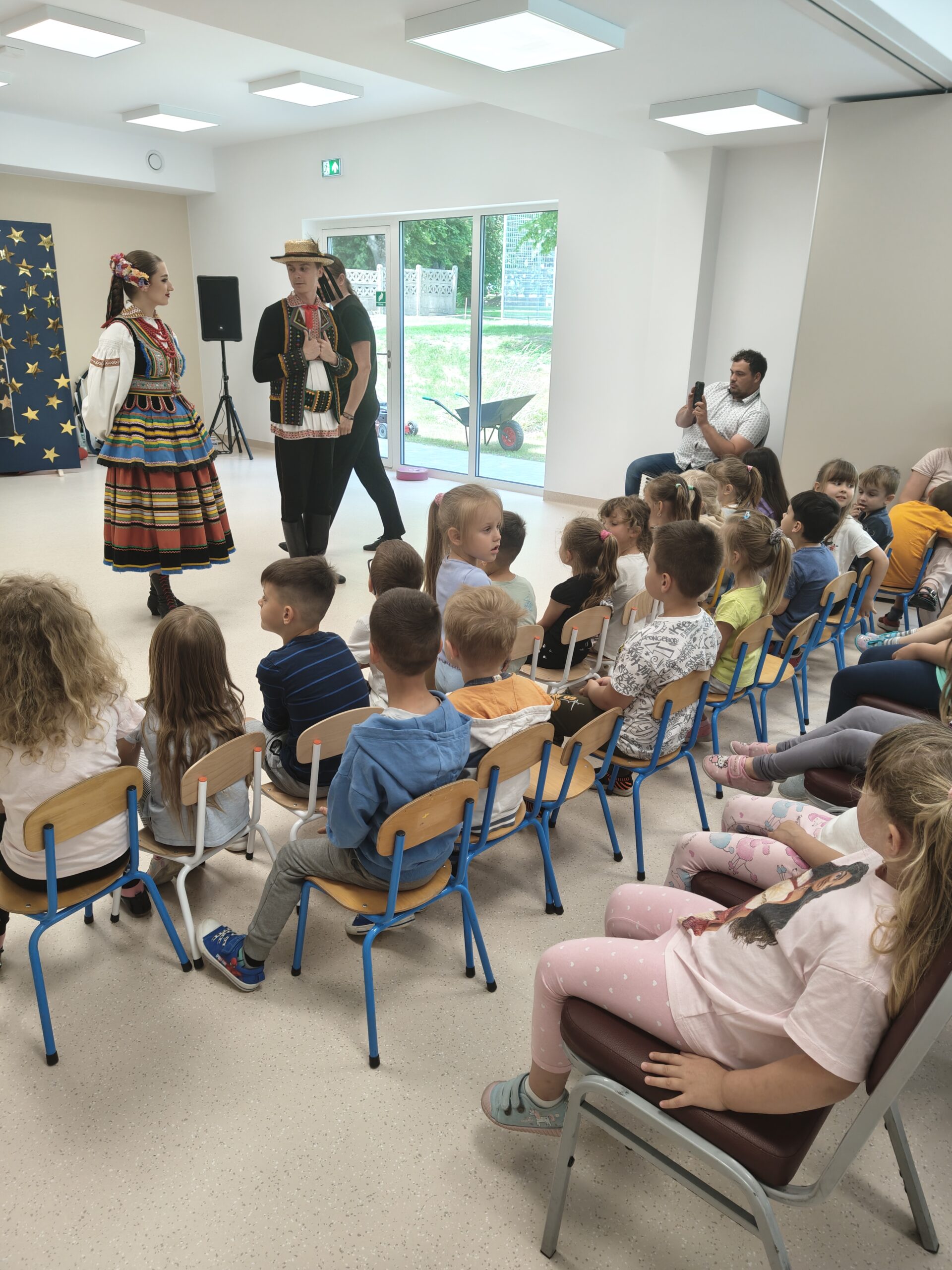 W dniu 24 czerwca 2025 roku dzieci z naszego przedszkola miały okazję uczestniczyć w warsztatach tanecznych. Warsztaty organizowało Centrum Kultury w Siennicy Różanej w ramach projektu Festiwalu Tradycji „Siennickie Sobótki” finansowane MEN ze środków programu Nasze Tradycje. Zajęcia taneczne przeprowadził instruktor zespołu tanecznego Jawor z Lublina. Dzieci dowiedziały się jak wygląda strój ludowy krzczonowski, nazwy podstawowych tańców ludowych jak Krakowiak oraz ich elementów jak: krzesany, kaszka, cwał. Dzieciom bardzo podobały się podstawowe kroki Krakowiaka oraz piękne stroje pary tanecznej z zespołu Jawor. Dziękujemy pani Dyrektor CK w Siennicy Różanej Agnieszce Poźniak za zorganizowanie warsztatów i dostarczenie naszym wychowankom tak wiele radości.