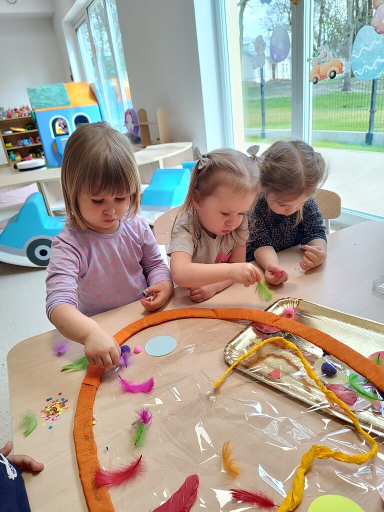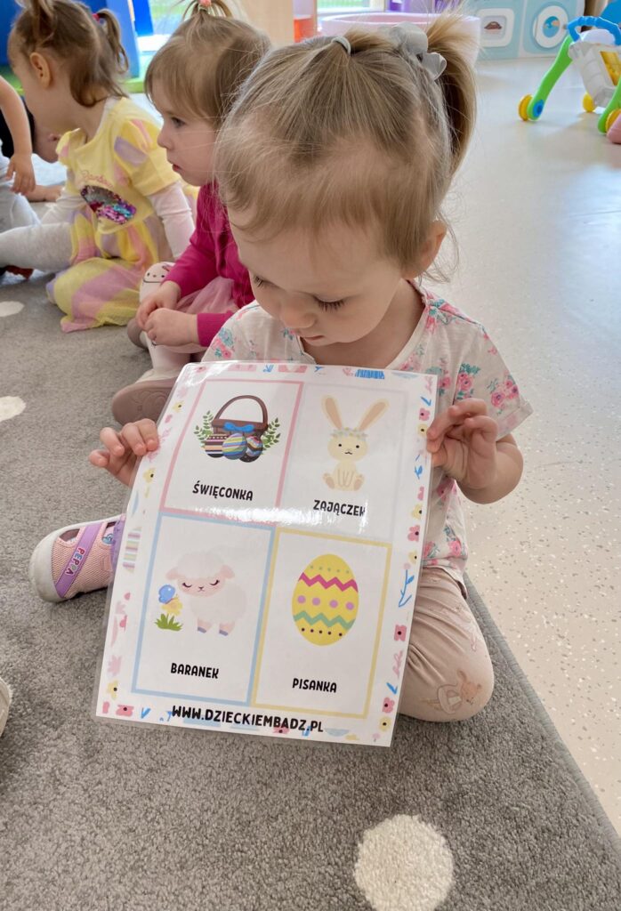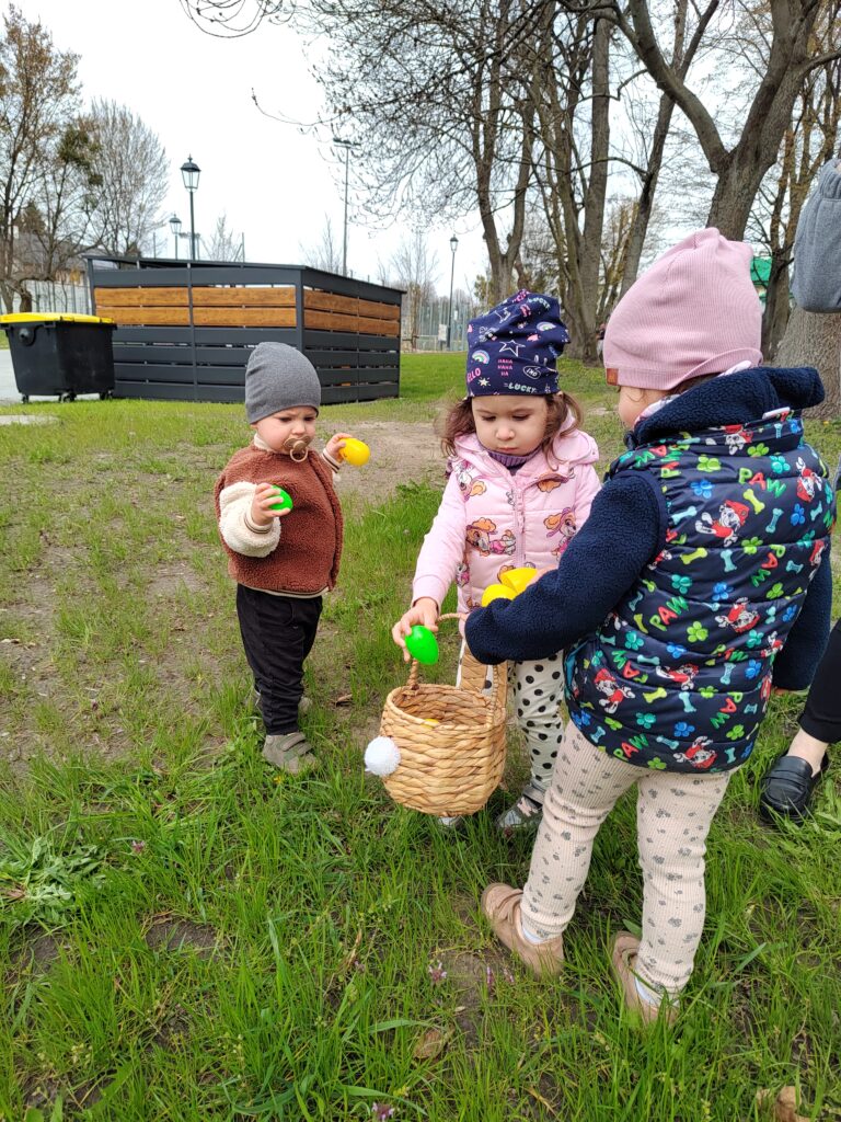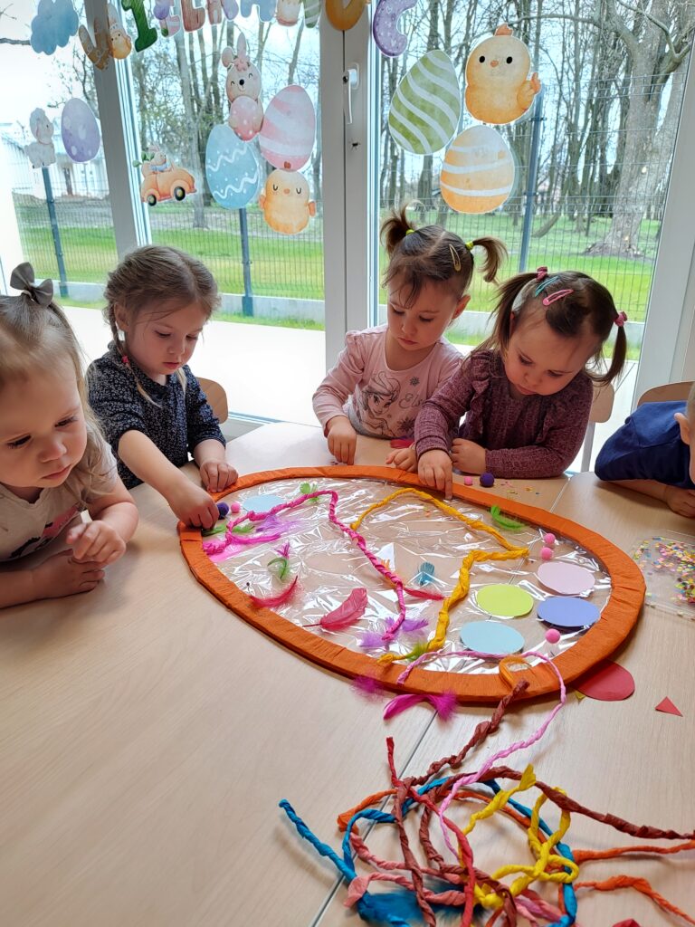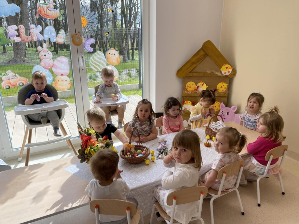 W tym tygodniu w naszym żłobku maluszki przygotowywały się do Świąt Wielkanocnych. Dzieci poznały symbole i zwyczaje świąteczne, dowiedziały się także co powinno znaleźć się w koszyczku wielkanocnym. Na zajęciach plastycznych maluchy z zapałem wyklejały pisankę. Powstała barwna praca, która ozdobiła naszą gazetkę. Na zakończenie odbyła się wielkanocna sesja zdjęciowa. Nasi żłobkowicze z uśmiechem na ustach pozowały do zdjęć w otoczeniu zajączków i kolorowych kwiatów.