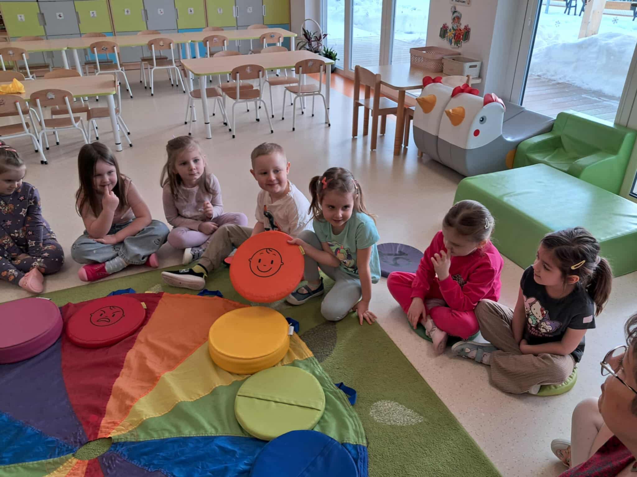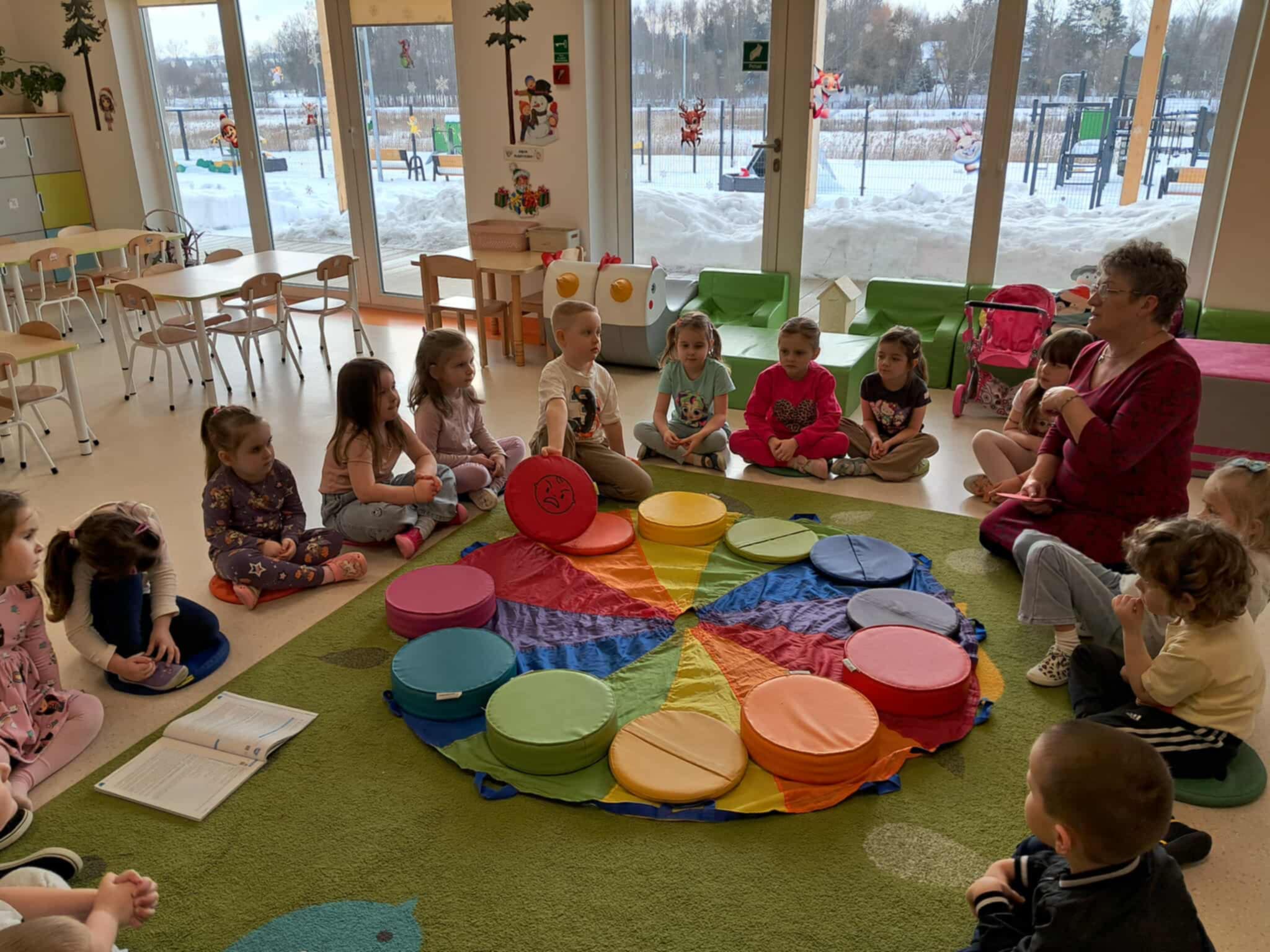 W ramach projektu „Mały Miś w Świecie Wielkiej Literatury” dnia 9 lutego 2026 r grupa „Sówki” zrealizowała moduł „Mały Miś w Świecie Emocji”. Dzieci uczyły się rozpoznawać i nazywać emocje. Dzieci dowiedziały się, że wszystkie emocje są ważne, nawet złość, która pozwala ustalać nam granice ale trzeba sobie z nią radzić. Smutek pozwala dostrzec co jest dla nas naprawdę cenne. Strach chroni przed zagrożeniem i przypomina o ostrożności. Radość daje energię i motywuje do działania. Dzieci świetnie sobie radziły w „Świecie emocji”.