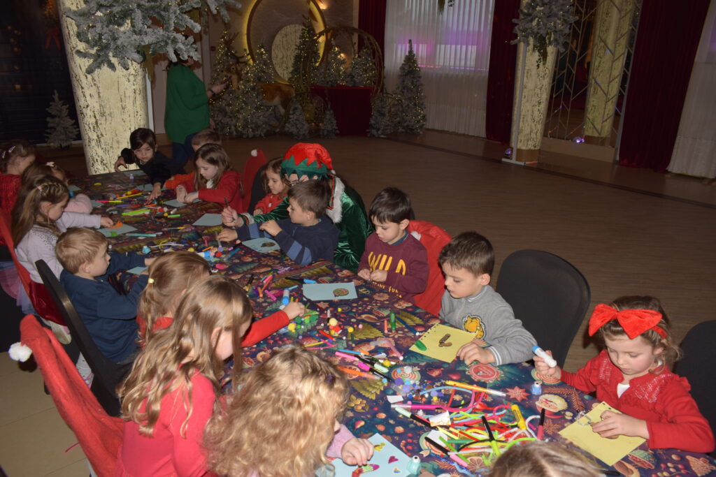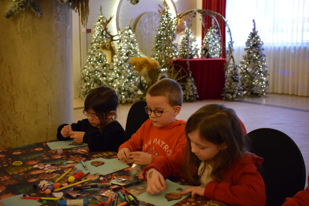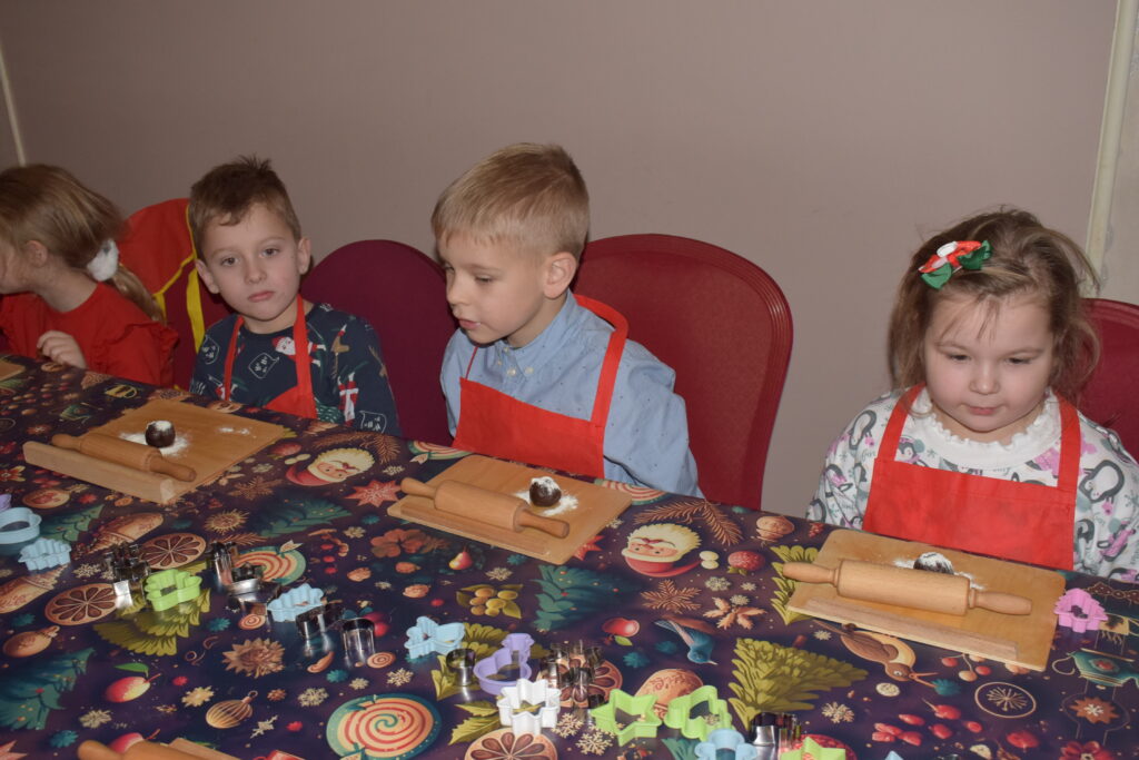 Pierwszym punktem programu była wspólna praca nad przygotowaniem pierniczków. Dzieci z radością piekły ciasteczka, które później mogły zabrać ze sobą do domu. Kolejnym zadaniem było tworzenie pięknych ozdób choinkowych. Przedszkolaki z zaangażowaniem malowały i ozdabiały świąteczne dekoracje, które z pewnością będą ozdobą ich domów.
