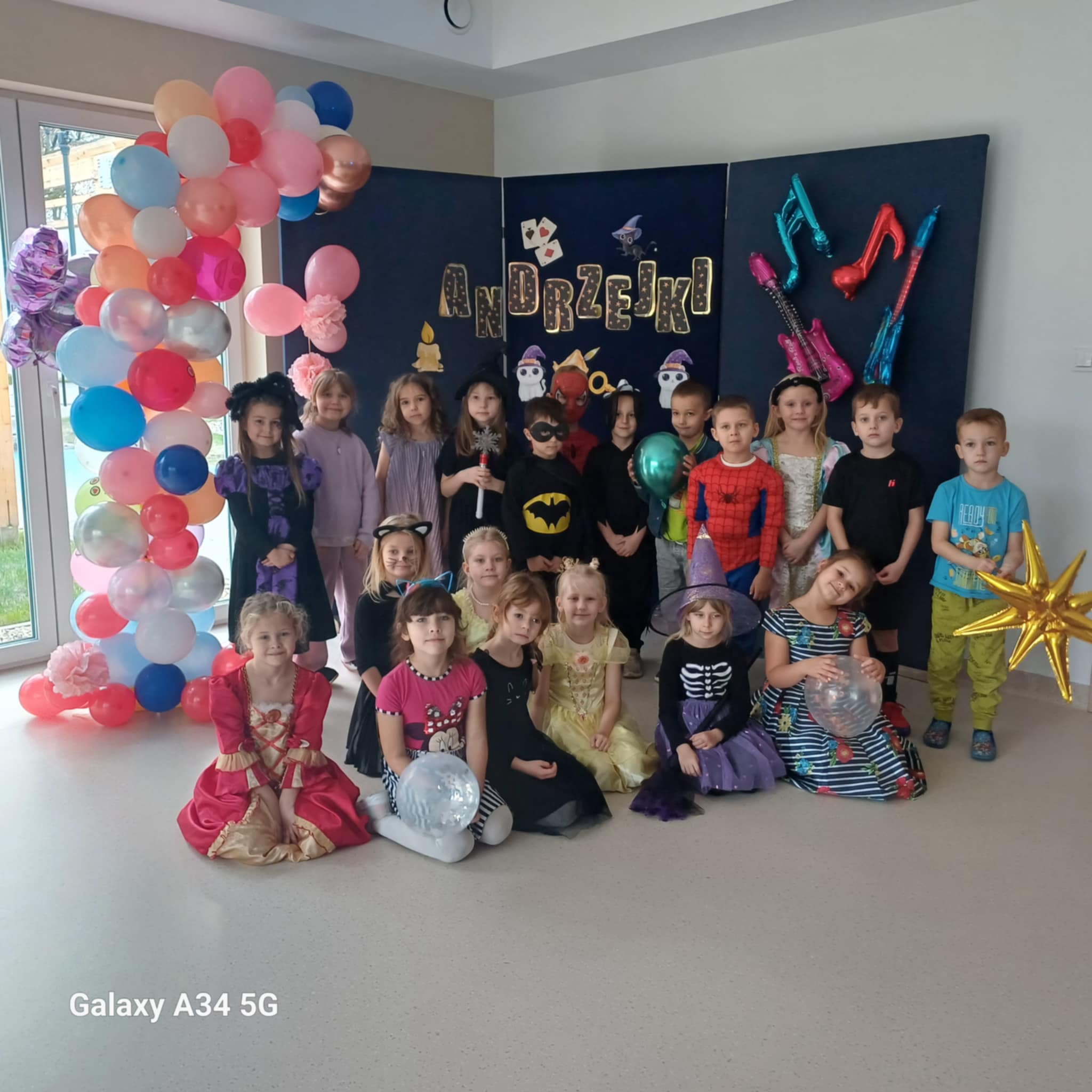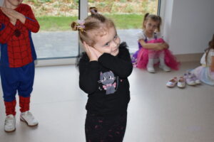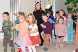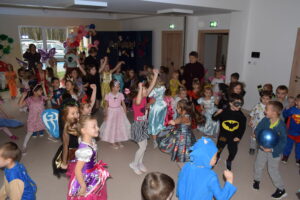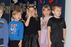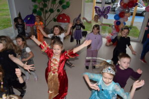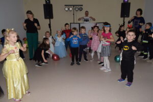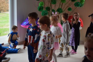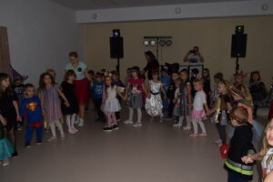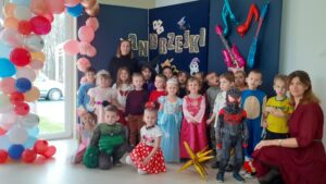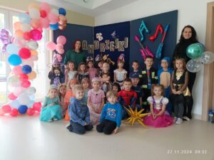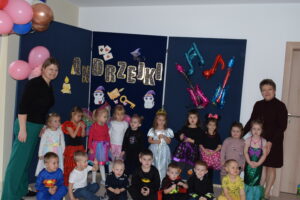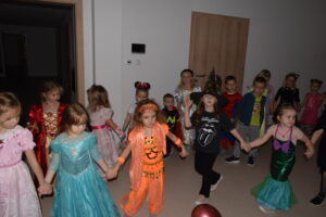 Andrzejki, to czas zabaw i wróżb, mocno osadzony w tradycji polskiej. W naszym przedszkolu od wielu lat pielęgnujemy zwyczaj organizowania zabawy andrzejkowej, urozmaiconej możliwością przebierania się dzieci w wymarzone kostiumy. W tym szczególnym dniu w jednym kręgu pląsały koty, duchy, strachy, nietoperze, czarodzieje i czarodziejki, a także postacie z bajek. Ogromną radość sprawiły dzieciom tańce i zabawy przygotowane przez animatora kultury. Do tańca przygrywał nam DJ , a od kolorowych reflektorów mieliśmy „niezły zawrót głowy”. Na zakończenie spotkania dzieci wspólnie wykonały plakat przedstawiający wesołe zabawy. Dzieci zmęczone ale bardzo szczęśliwe wróciły do domów.