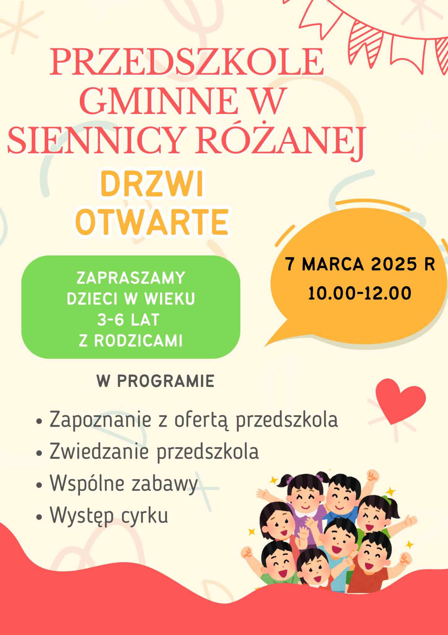 Rozpoczęcie edukacji przedszkolnej to niezwykle ważny moment w życiu każdego dziecka. To pierwszy krok w świat nowych doświadczeń, zabawy i nauki w gronie rówieśników. Aby ułatwić przyszłym przedszkolakom proces adaptacji, serdecznie zapraszamy na Dzień Otwarty, który odbędzie się 07 marca 2025 r. o godzinie 10:00 w naszym przedszkolu.