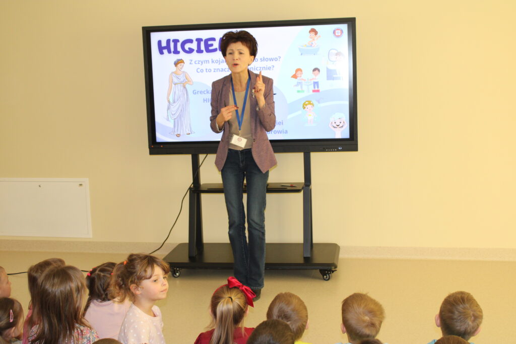 Spożywanie przez dzieci i młodzież odpowiednich produktów, we właściwych ilościach i proporcjach, a także codzienna aktywność fizyczna, higiena osobista i inne elementy stylu życia są kluczem do zdrowia i prawidłowego rozwoju. W trosce więc o dzieci, dnia 19 marca 2025 roku do naszego przedszkola zaprosiliśmy przedstawicielkę Państwowej Inspekcji Sanitarnej w Krasnymstawie panią Agatę, która przygotowała piękną i jakże pouczającą prezentację multimedialną związaną z tym tematem. Dzieci z zaciekawieniem słuchały prelekcji pani Agaty i chętnie odpowiadały na zadawane pytania. To była bardzo interesująca lekcja zdrowego stylu życia. Zatem wybierajmy zdrowie i zdrowe odżywianie!