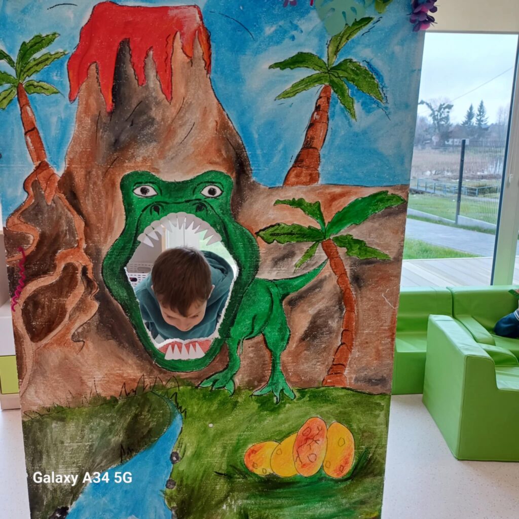 W naszej grupie 6-latków odbyły się fascynujące zajęcia poświęcone dinozaurom! Dzieci miały okazję przenieść się w czasie miliony lat wstecz, aby poznać te prehistoryczne stworzenia, które niegdyś zamieszkiwały naszą planetę. Zajęcia rozpoczęliśmy od prezentacji różnych rodzajów dinozaurów – zarówno tych roślinożernych, jak i mięsożernych, oraz dowiedzieliśmy się, jak wyglądały ich środowiska życia.