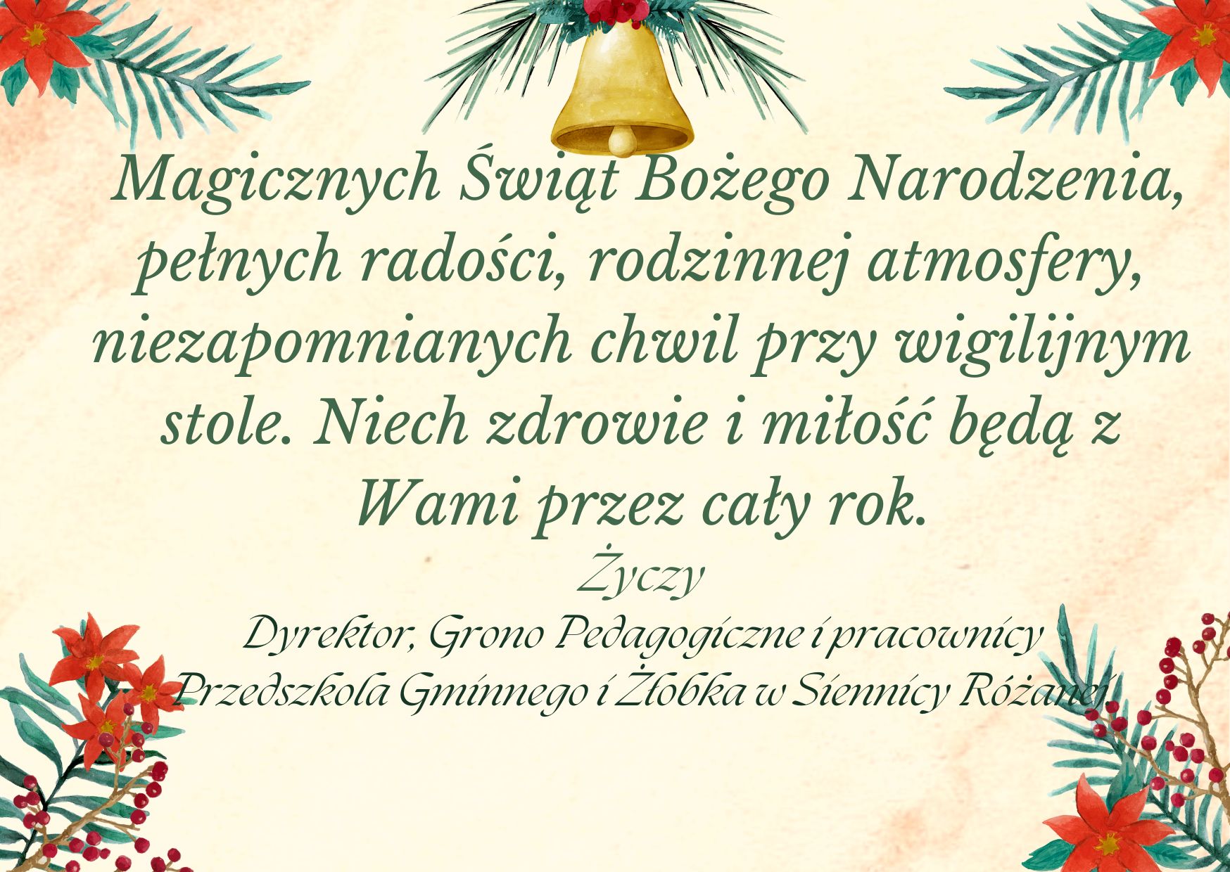 Dnia 18 grudnia 2024 roku w sali widowiskowej Przedszkola Gminnego w Siennicy Różanej o wyznaczonej godzinie zebrały się wszystkie dzieci z przedszkola, zaproszeni goście, pani dyrektor i personel przedszkola i żłobka, aby obejrzeć jasełka pt. „W Betlejem” przygotowane przez grupę „Rozśpiewane Zuchy” pod opieką pani Ewy Kaczor i Anny Żebrowskiej. Wierszem i piosenką opowiedziały historię…